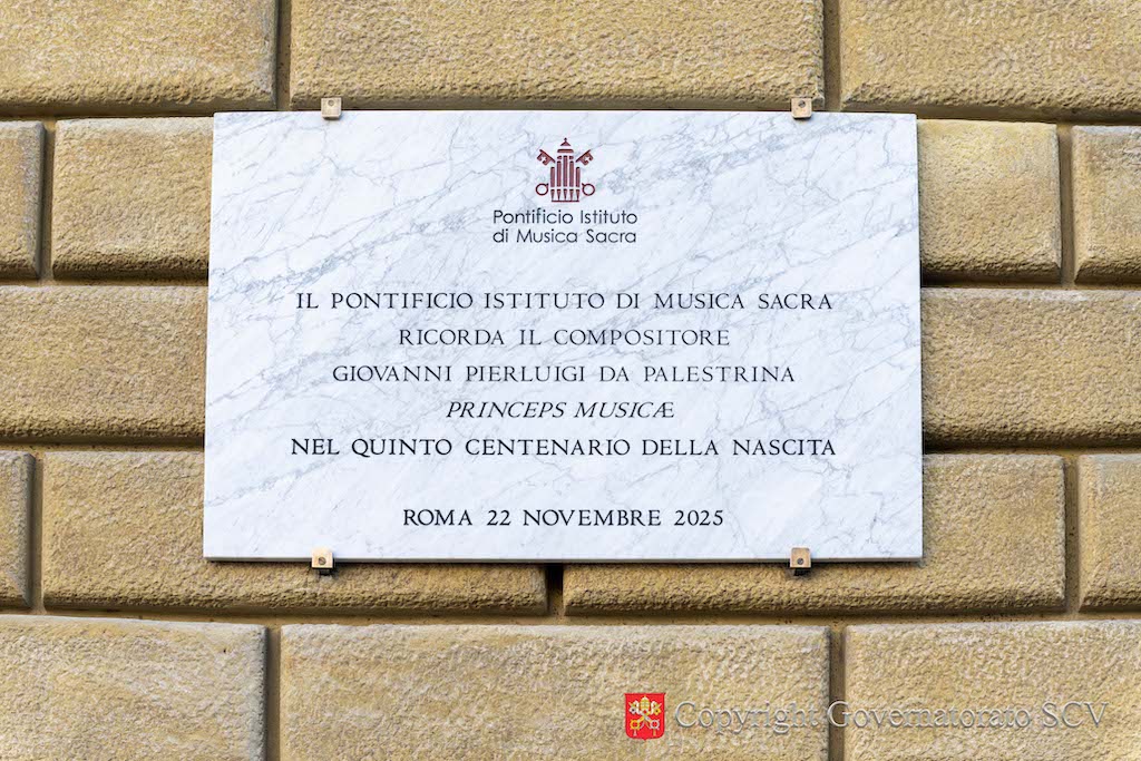 A plaque honoring the renowned composer and organist Giovanni Pierluigi da Palestrina, on the fifth centenary of his birth, has been unveiled on the façade of Palazzo San Carlo in Piazza di Santa Marta in Vatican City.