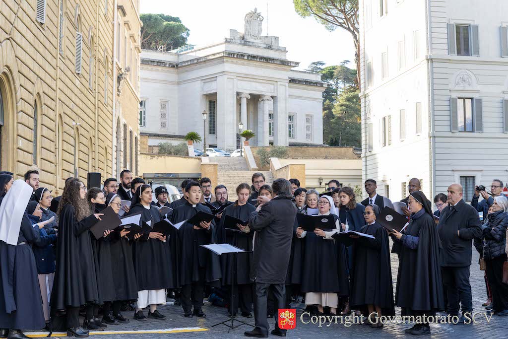 The ceremony took place on Saturday afternoon, 22 November, on the liturgical memorial of Saint Cecilia. Cardinal José Tolentino de Mendonça, Grand Chancellor of the Pontifical Institute of Sacred Music and Prefect of the Dicastery for Culture and Education, blessed the plaque and delivered a brief address. The Dominican Father Robert Mehlhart, Dean of the Pontifical Institute of Sacred Music, opened the gathering, and the Polyphonic Choir of the same Institute performed a musical interlude.
