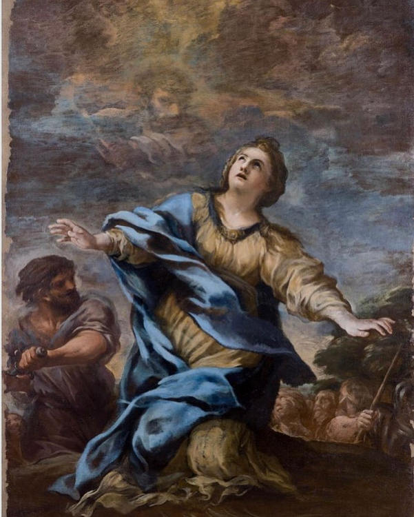 Despite the cruel tortures inflicted upon her, Martina remained unharmed until her life was ended by beheading. Her martyrdom took place at the tenth milestone of the Via Ostiense, where a church—now lost—was later built. Her relics were subsequently translated, together with those of the martyrs Epiphanius and Concordius, to the Church of Saints Luca and Martina in Rome.