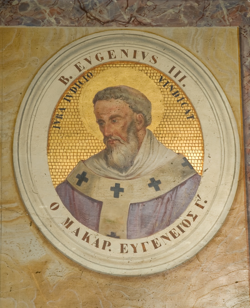 El pontificado de Eugenio III estuvo marcado por numerosas dificultades, sobre todo a causa de la autonomía del Municipio de Roma, con el cual resultaba muy difícil establecer un diálogo, a pesar de las dotes diplomáticas del Papa. Por esta razón, Eugenio III pasó poco tiempo en Roma, con estancias breves y esporádicas, prefiriendo residir en otras ciudades del Lacio que permanecieron fieles al Papado, como Viterbo, Tuscolo, Ferentino y Segni.