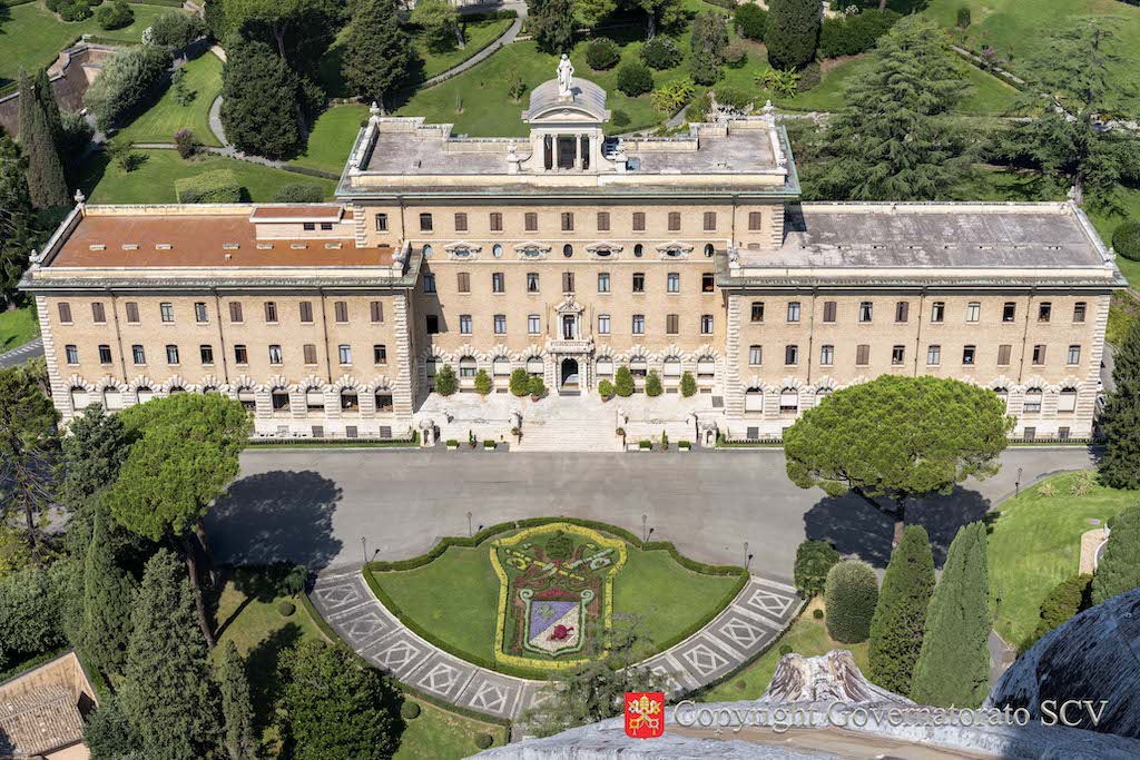 Le blason floral du Pape Léon XIV a été achevé dans les Jardins du Vatican, juste en face du Palais du Gouvernorat, sur la pente qui descend vers l’abside de la basilique Saint-Pierre.