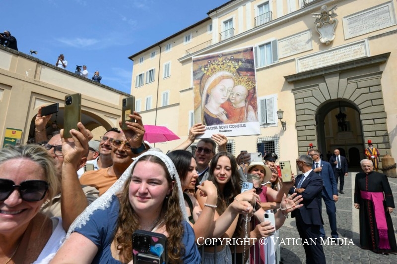 Le Pape Léon XIV était arrivé aux Villas pontificales de Castel Gandolfo dans l’après-midi du mercredi 13 août, accueilli, entre autres, par la Présidente du Gouvernorat, Sœur Raffaella Petrini, par le Directeur, Andrea Tamburelli, et par les employés de la Direction des Villas pontificales.