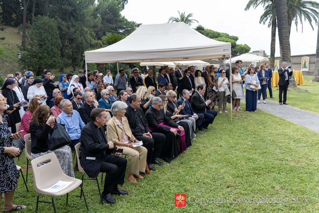 Le lien étroit entre le Siège de Pierre et l’Argentine a été renouvelé avec l’installation dans les Jardins du Vatican d’une mosaïque de la Vierge de Luján, Patronne de ce pays sud-américain. La bénédiction solennelle et l’inauguration de l’image ont eu lieu dans la matinée du mardi matin 9 septembre, en présence des Cardinaux Pietro Parolin, Secrétaire d’État, Leonardo Sandri, Vice-Doyen du Collège cardinalice, Fernando Vérgez Alzaga, Président émérite du Gouvernorat de l’État de la Cité du Vatican, Víctor Manuel Fernández, Préfet du Dicastère pour la Doctrine de la Foi, et de Mgr Lucio Adrián Ruiz, Secrétaire du Dicastère pour la Communication, Mgr Guillermo Javier Karcher, official de la Secrétairerie d’État, ainsi que de sœur Raffaella Petrini, Présidente du Gouvernorat, S.E. M. Luis Pablo María Beltramino, Ambassadeur de la République argentine près le Saint-Siège, des prêtres, des religieux, des religieuses et des représentants de la communauté argentine résidant à Rome.
