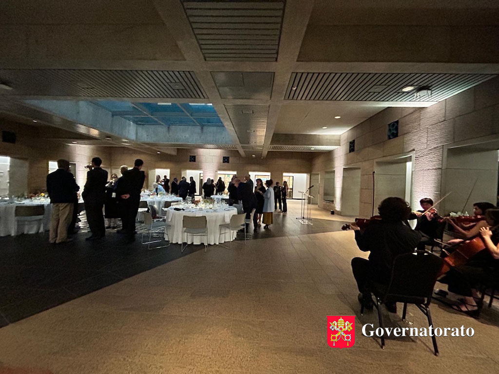 Barbara Jatta, Directrice des Musées et des Biens culturels, a remercié toutes les personnes présentes qui ont contribué au succès global des Musées du Vatican, soulignant l’importance du mécénat artistique. Mettant en avant quelques-unes des restaurations les plus récentes – telles que la Salle de Constantin de Raphaël, l’Apollon du Belvédère, la Lamentation sur le Corps du Christ de Bellini et les restaurations de la Cour du Bramante – elle a exprimé à tous les Patrons sa profonde gratitude et sa reconnaissance. Parmi les autres projets mentionnés figuraient ceux récemment inaugurés, comme la Collection de micro-mosaïques exposée dans les Galeries de la Bibliothèque vaticane dans l’historique Salle Pauline II, ouverte au public, ainsi que les nombreuses expositions et concerts qui se déroulent désormais au Palais apostolique de Castel Gandolfo.