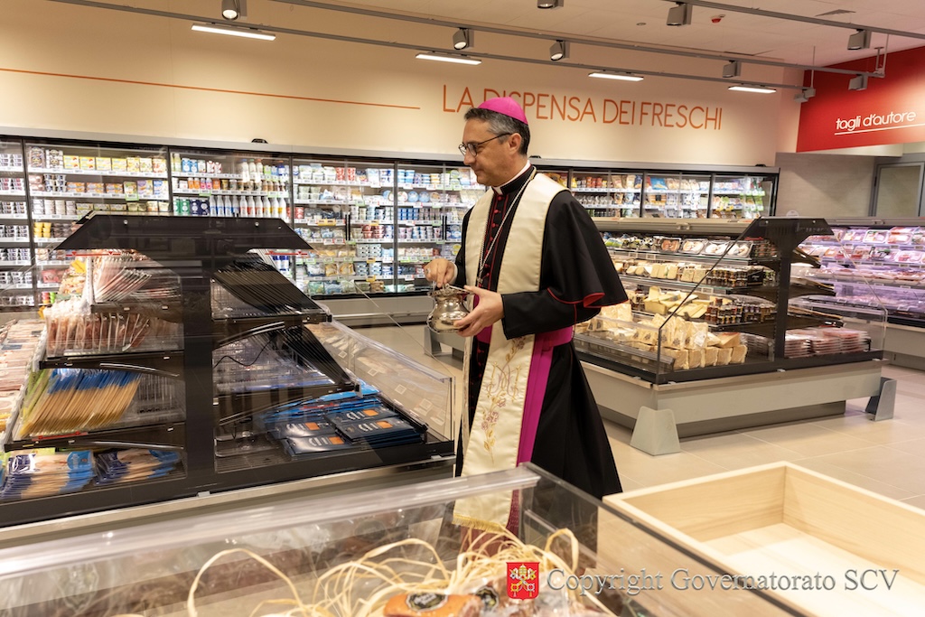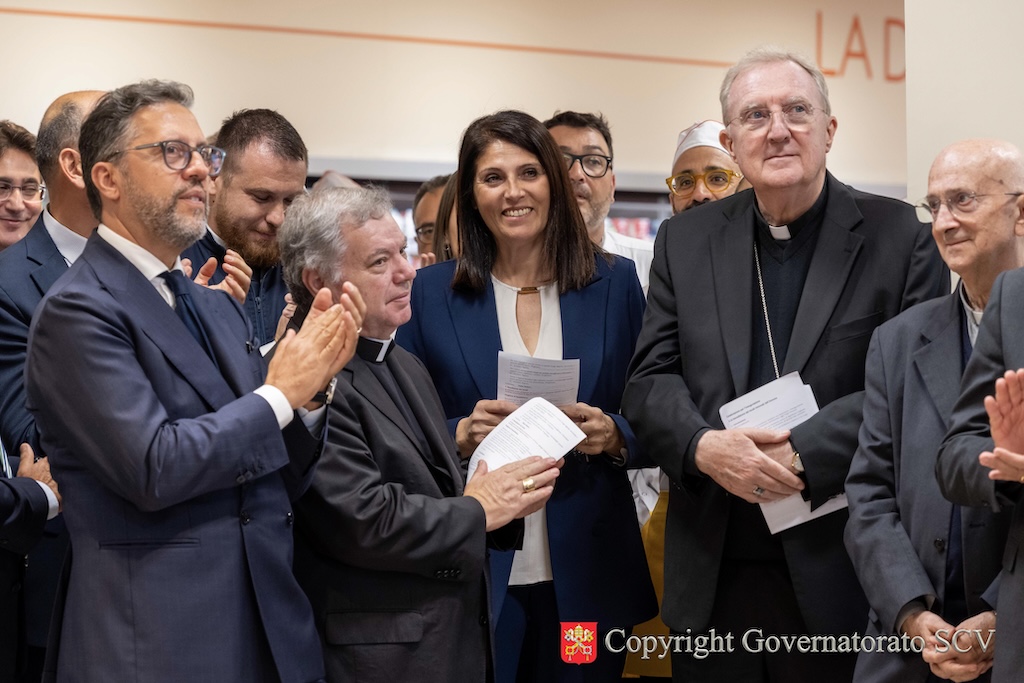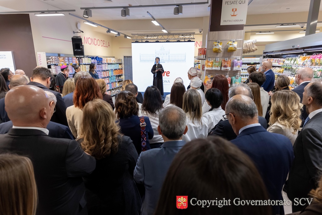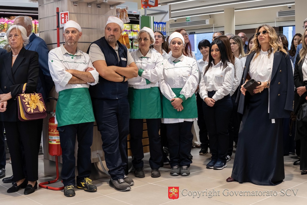 Sœur Raffaella Petrini et Laura Gabrielli ont officiellement coupé le ruban du point de vente, entièrement rénové après d’importants travaux de restructuration.