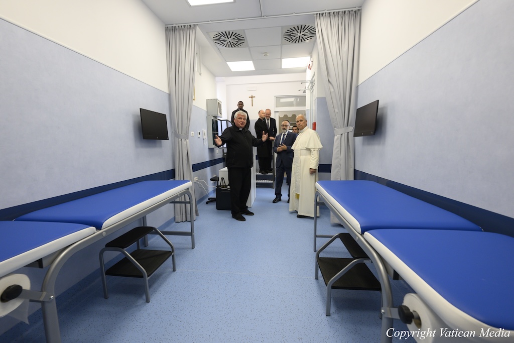 Il s’agit d’un espace composé de deux pièces, où les personnes indigentes peuvent être examinées et bénéficier d’analyses grâce à un équipement de pointe. On y trouve également un nouveau service de radiologie qui permettra, grâce à un appareil radiologique à rayons X de dernière génération, de diagnostiquer rapidement et avec précision des pneumonies, des fractures osseuses, des tumeurs, des maladies dégénératives, des calculs ou encore des obstructions intestinales, comme l’indique un communiqué de l’Aumônerie apostolique.