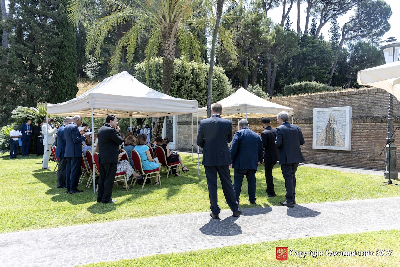 La cerimonia di inaugurazione e di benedizione dell’artistico mosaico si è svolta, venerdì mattina, 27 giugno, presieduta dal Cardinale Pietro Parolin, Segretario di Stato, e da Sr. Raffaella Petrini, Presidente del Governatorato dello Stato della Città del Vaticano.