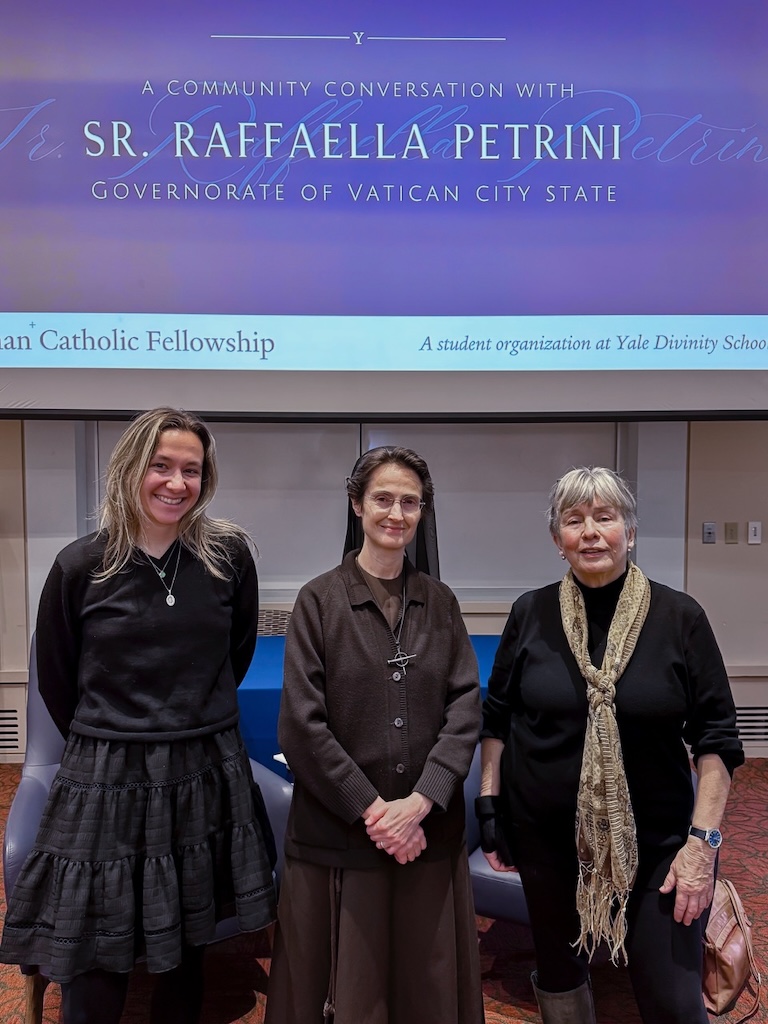La consulente di facoltà, la dottoressa Teresa Berger, e la presidente della YDS Roman Catholic Fellowship ed ex dipendente dei Patrons of the Arts nei Musei Vaticani, Sophia Špralja, hanno contribuito a guidare l’evento. Gli studenti e i professori della Yale Divinity School hanno posto a Sr. Petrini una serie di domande, dalla missione dello Stato della Città del Vaticano alla situazione sotto il nuovo Papa Leone XIV. L'evento si è concluso con la consegna a Sr. Petrini di un dono da parte di Špralja a nome della Yale Divinity School, del decano Greg Sterling e della YDS Roman Catholic Fellowship per ringraziarla della sua presenza e partecipazione.