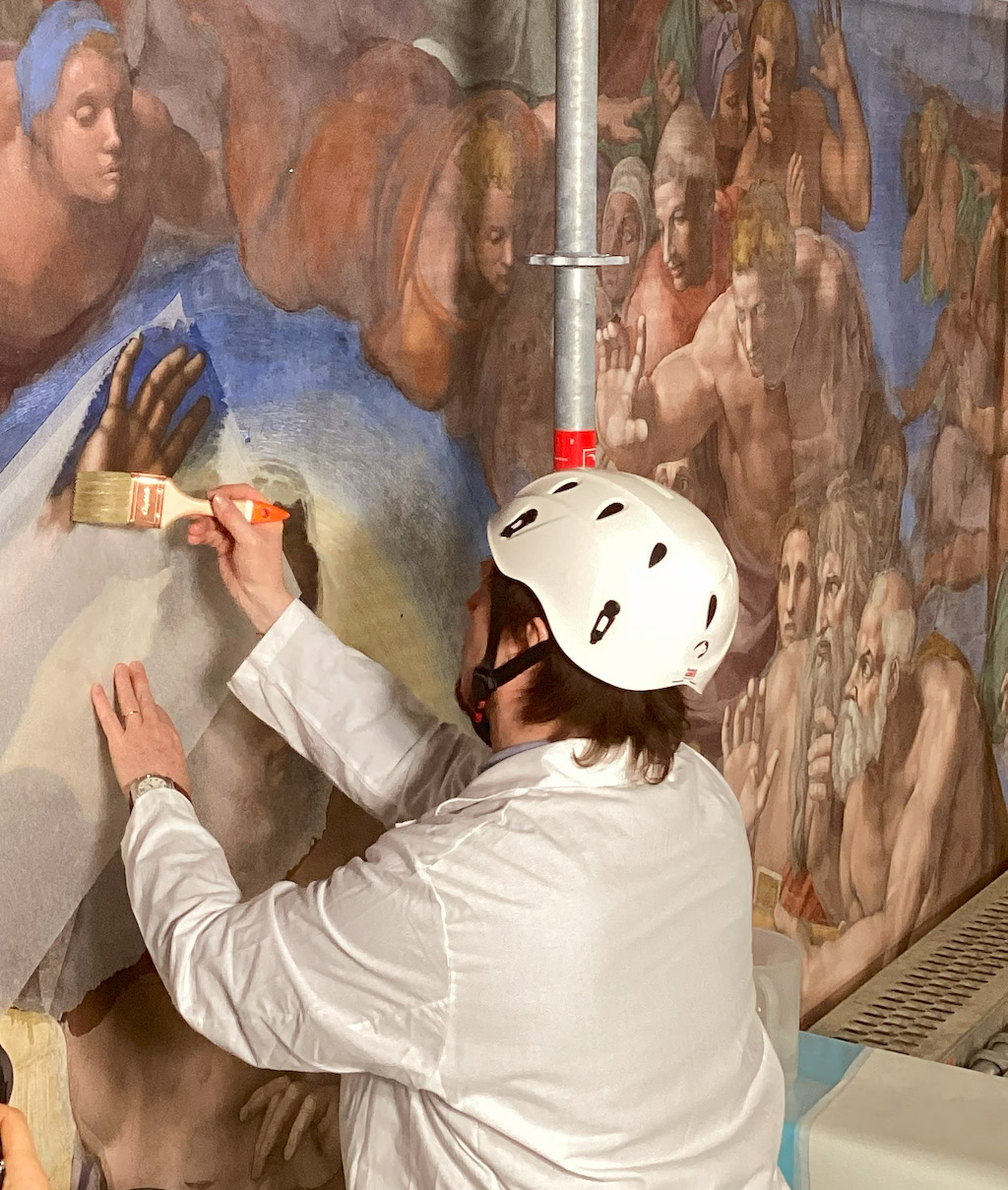 Per quanto riguarda il Laboratorio di Restauro Dipinti sono al lavoro 20 restauratori, suddivisi in quattro squadre diverse che si alternano in cantiere giorno per giorno, affinché tutti possano avere la straordinaria opportunità di trovarsi a tu per tu con l’affresco michelangiolesco, in un’occasione che non si ripeterà troppo spesso. Io ho avuto la fortuna di essere presente in cantiere durante il restauro di trent’anni fa e posso garantire che l’emozione di riscoprire l’affresco di Michelangelo nella sua potenza espressiva è qualcosa che rimane dentro nell’anima e non si dimentica per tutta la vita.