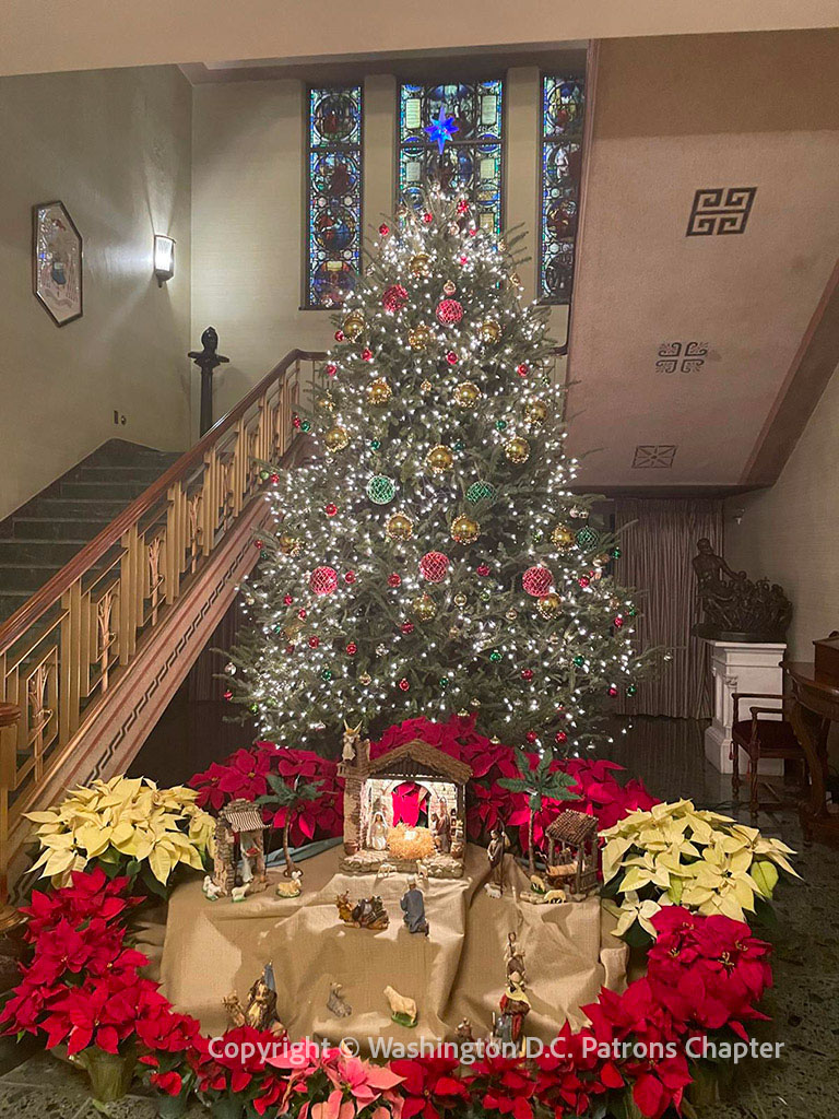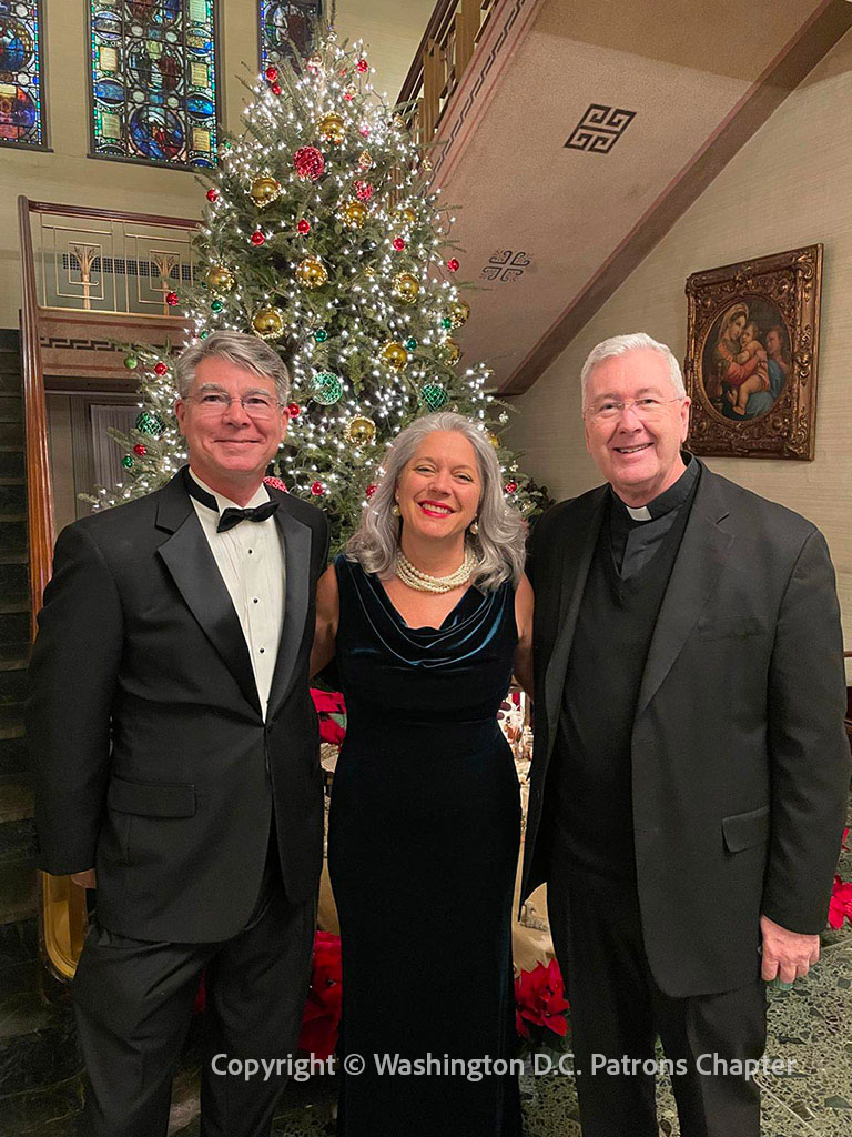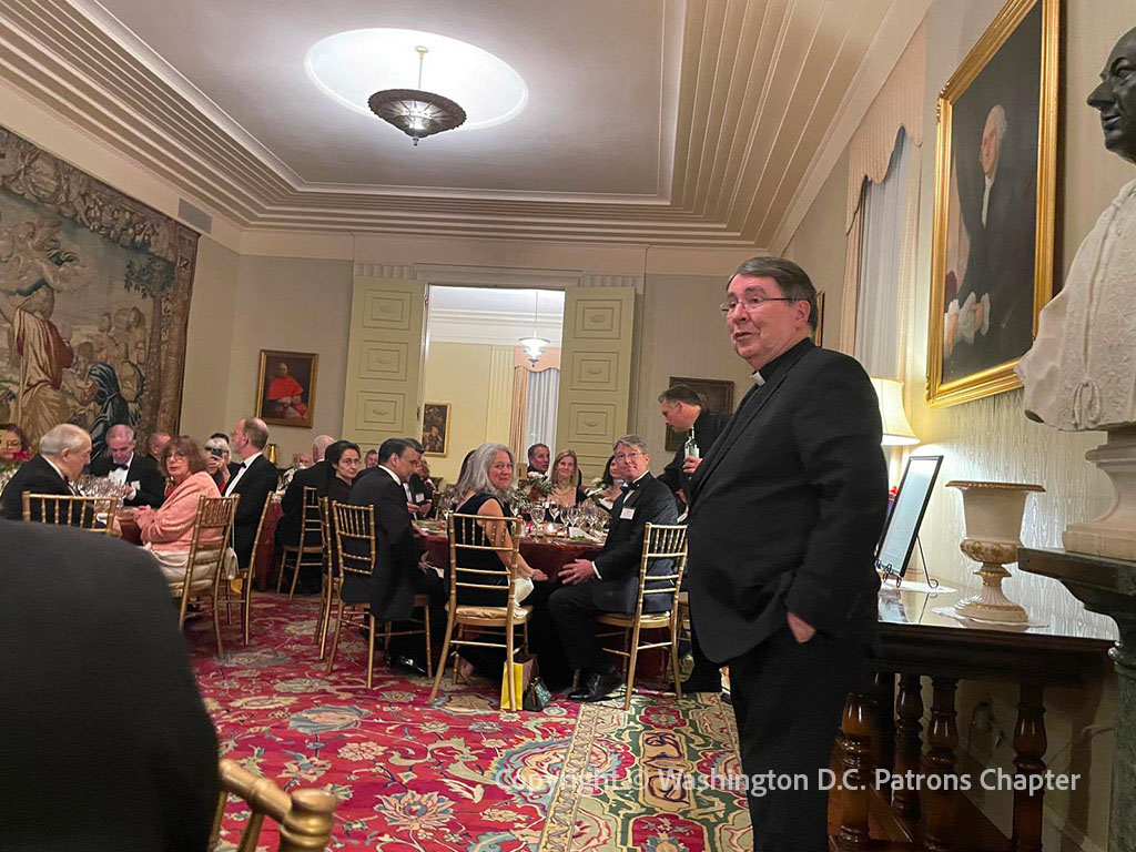 The members of the Chapter were led by Arthur and Sue Lohsen, and accompanied by Msgr. Terence Hogan, Coordinator of the Office for Relations with Patrons of the Arts in the Vatican Museums. The dinner was held on Saturday evening, 14 December, at the Apostolic Nunciature in the United States of America, in the presence of the Nuncio, Cardinal Christophe Pierre.