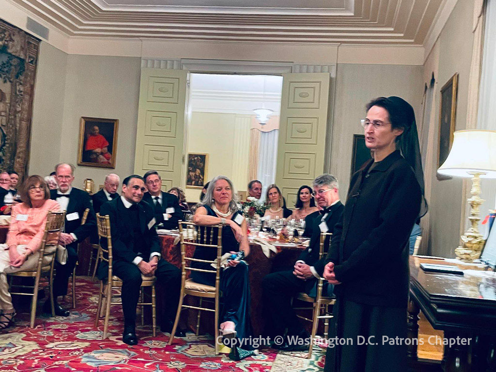 The pre-Christmas dinner with the Washington D.C. Chapter of the Patrons of the Arts in the Vatican Museums, was an occasion for Sr. Raffaella Petrini, Secretary General of the Governorate, to thank the Chapter for its generous contribution to the mission of the Museums, which permitted the completion of indispensable projects.