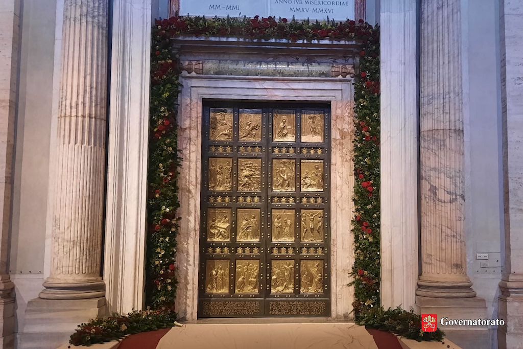 The Garden and Environment Service of the Governorate of Vatican City State has prepared and installed the floral decoration that adorns the Holy Door. With great skill and passion, eight members of staff decorated the famous Door, through which millions of pilgrims will walk, in the course of the Holy Year.