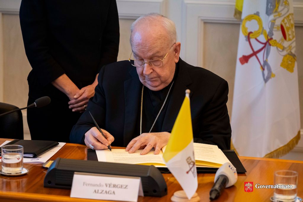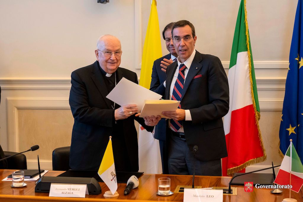 On Thursday morning, 27 February, the Governorate of Vatican City State signed an important Protocol of Cooperation with the Customs and Monopolies Agency of the Italian Republic at the Agency's headquarters in Piazza Mastai, Rome. The agreement, which is aimed at revitalizing customs cooperation, was signed by Mr. Roberto Alesse, Director of the Customs and Monopolies Agency, and by Cardinal Fernando Vérgez Alzaga, President of the Governorate.