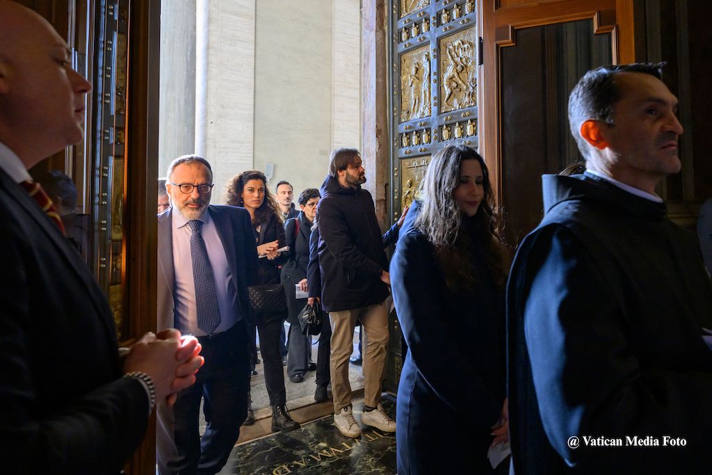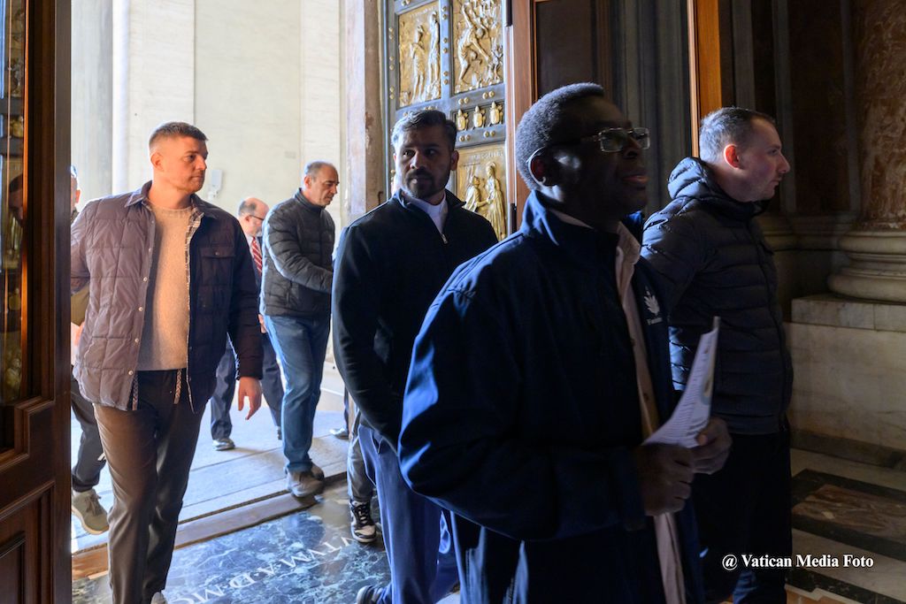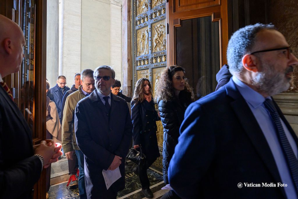 Leading the pilgrimage were Prof. Andrea Arcangeli, M.D. and Luigi Carbone, M.D, respectively Director and Deputy Director of the Directorate of Health and Hygiene, and Br. Binish Thomas Mulackal, O.H., Director of the Vatican Pharmacy. They were joined with others who come into daily contact with the sick: doctors, pharmacists, nurses - the professionals of the Governorate, who through their service take care of those who are suffering illness.