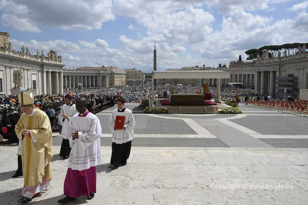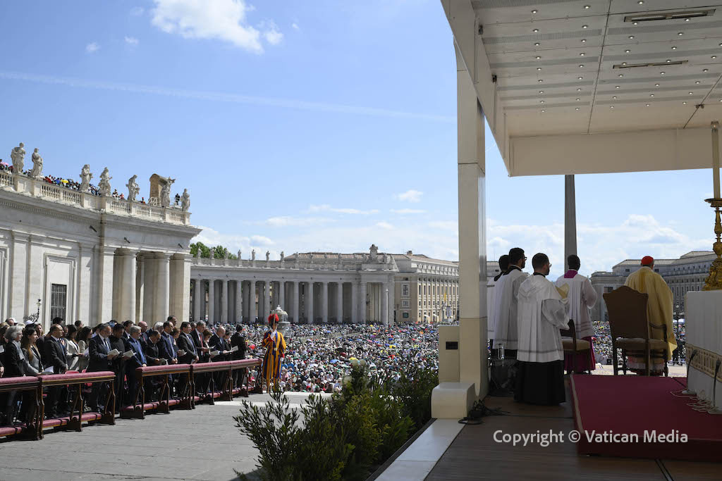 "On Divine Mercy Sunday, we remember our beloved Pope Francis with affection. Indeed, such memories are particularly vivid among the employees and faithful of Vatican City, many of whom are present here, and whom I would like to thank for the service they perform every day. To you, to all of us, to the whole world, Pope Francis extends his embrace from Heaven". Thus Cardinal Pietro Parolin, Secretary of State for the Francis papacy, presided over the Eucharistic concelebration in suffrage of the Pope. The rite took place on Sunday morning, April 27, the Second of Easter or Divine Mercy Sunday. About 200,000 people were present, including the employees of Vatican City and tens of thousands of adolescents who had come to Rome from all over the world with their parishes, schools and families for this day of the Jubilee dedicated to them.