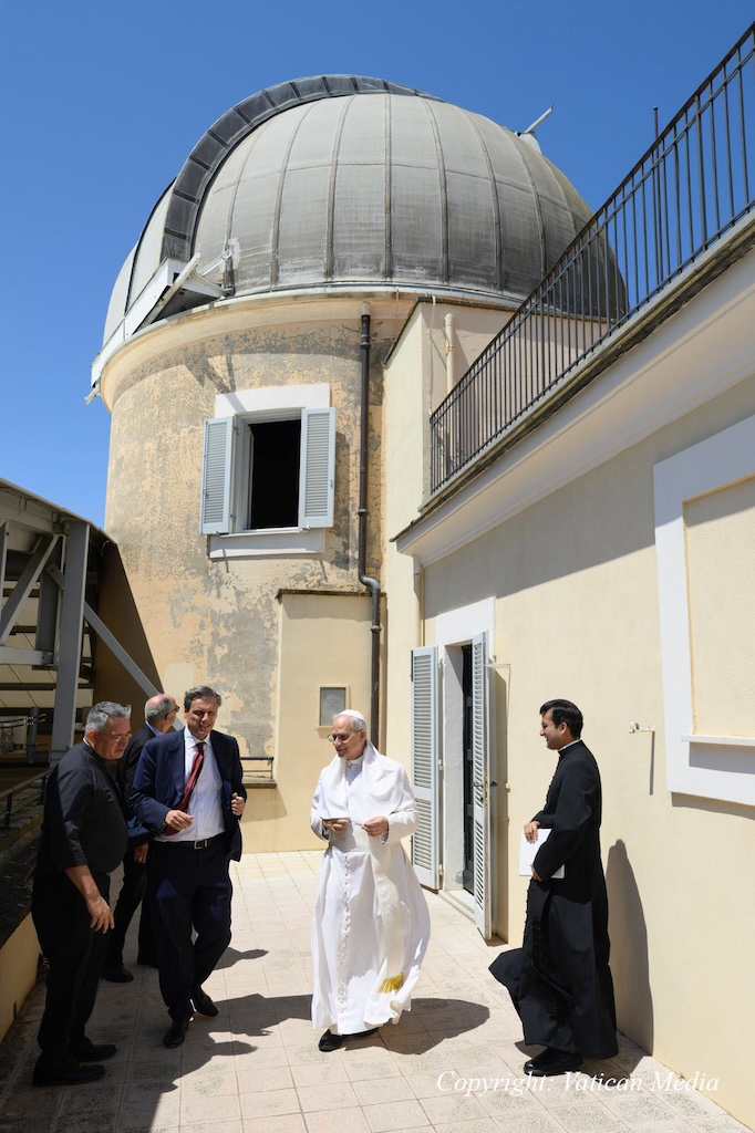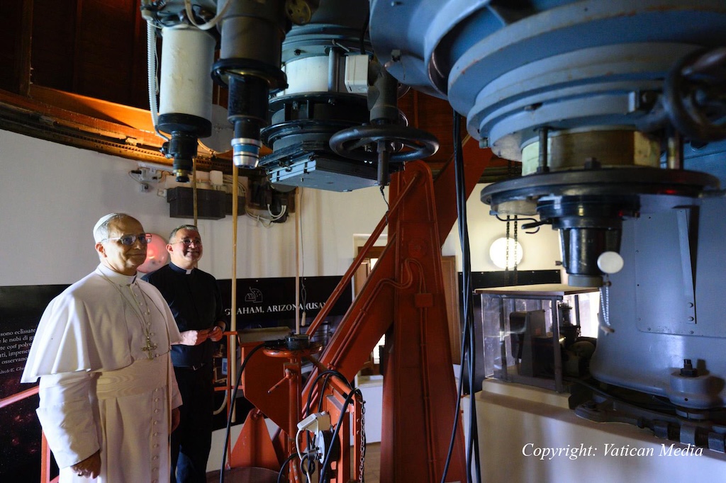 Present during the Pope’s visit were, among others, Andrea Tamburelli, Director of the Pontifical Villas, and Rev. David Brown, S.J., of the Vatican Observatory, astronomer and Dean of the Summer School of Astrophysics, who explained how the telescopes function.