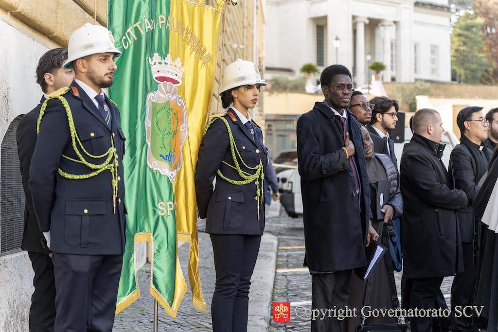 The plaque was installed by the staff of the Directorate of Infrastructure and Services of the Governorate of Vatican City State.