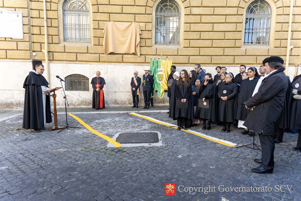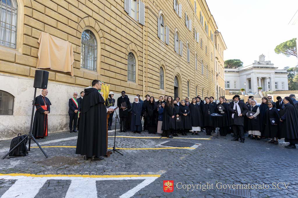 The ceremony took place on Saturday afternoon, 22 November, on the liturgical memorial of Saint Cecilia. Cardinal José Tolentino de Mendonça, Grand Chancellor of the Pontifical Institute of Sacred Music and Prefect of the Dicastery for Culture and Education, blessed the plaque and delivered a brief address. The Dominican Father Robert Mehlhart, Dean of the Pontifical Institute of Sacred Music, opened the gathering, and the Polyphonic Choir of the same Institute performed a musical interlude.