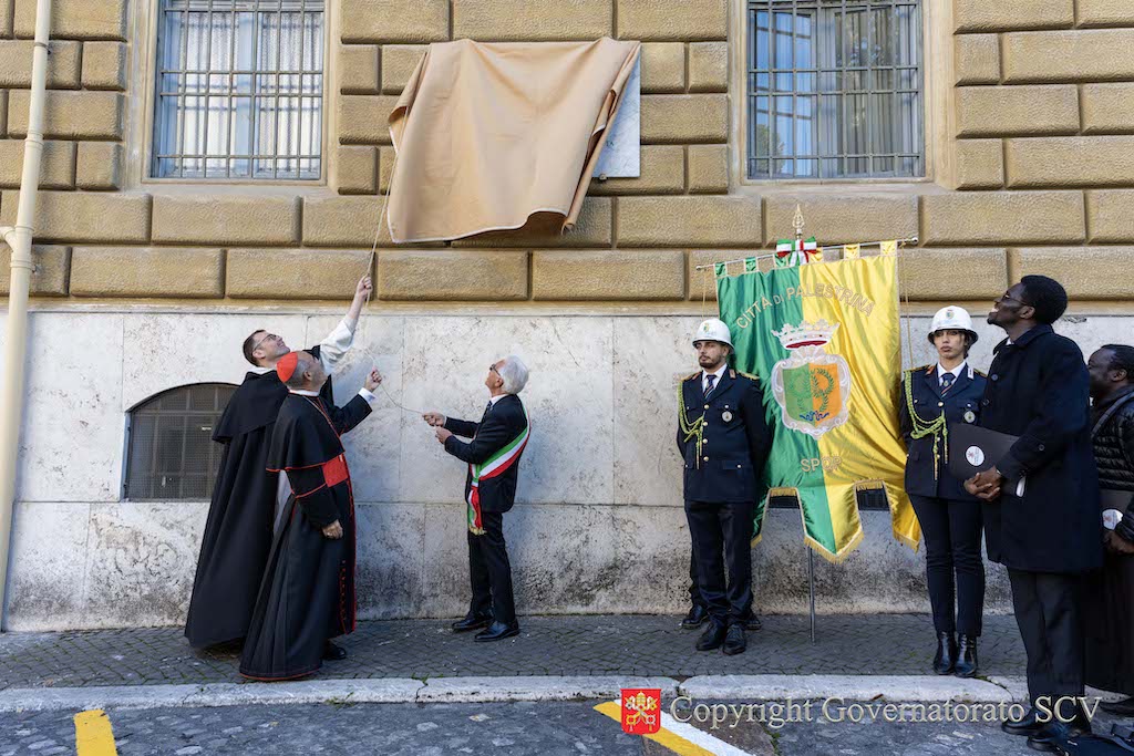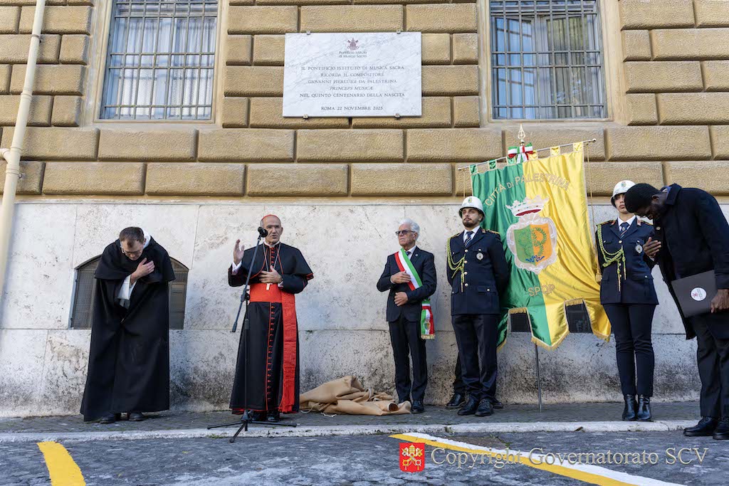 A plaque honoring the renowned composer and organist Giovanni Pierluigi da Palestrina, on the fifth centenary of his birth, has been unveiled on the façade of Palazzo San Carlo in Piazza di Santa Marta in Vatican City.