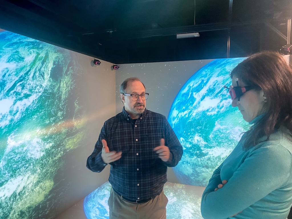 The delegation from the Directorate, composed of Davide Giordano and Monica Giuliano, was welcomed by Prof. Daniel Joyce, Chair of the Department of Computer Science and Prof. Frank Klassner, a faculty member of the same department and director of the CAVE project (Cave Automatic Virtual Environment). During the day, a meeting was also held with several students who had taken part in the most recent edition of the internship, which took place between September and December 2025.