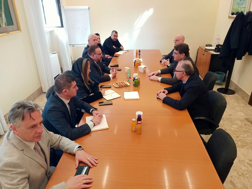 On Wednesday, March 25, a delegation led by the CEO of Poste Albania, Etien Xhafaj, visited the headquarters of Vatican Post, where they were welcomed by the Director of Telecommunications and Information Systems, Antonino Intersimone, and the Head of the Postal and Philatelic Service, Rev. Felice Bruno.