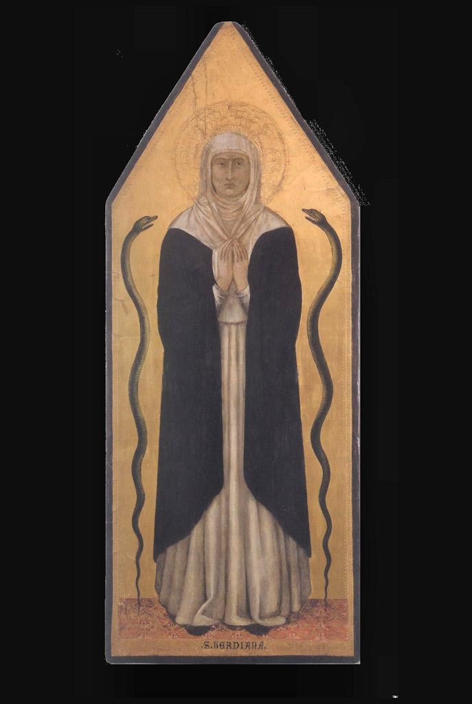 In her final years Verdiana is said to have silently endured a harsh trial: living together with two snakes in her cell, a presence she never wished to reveal to anyone.