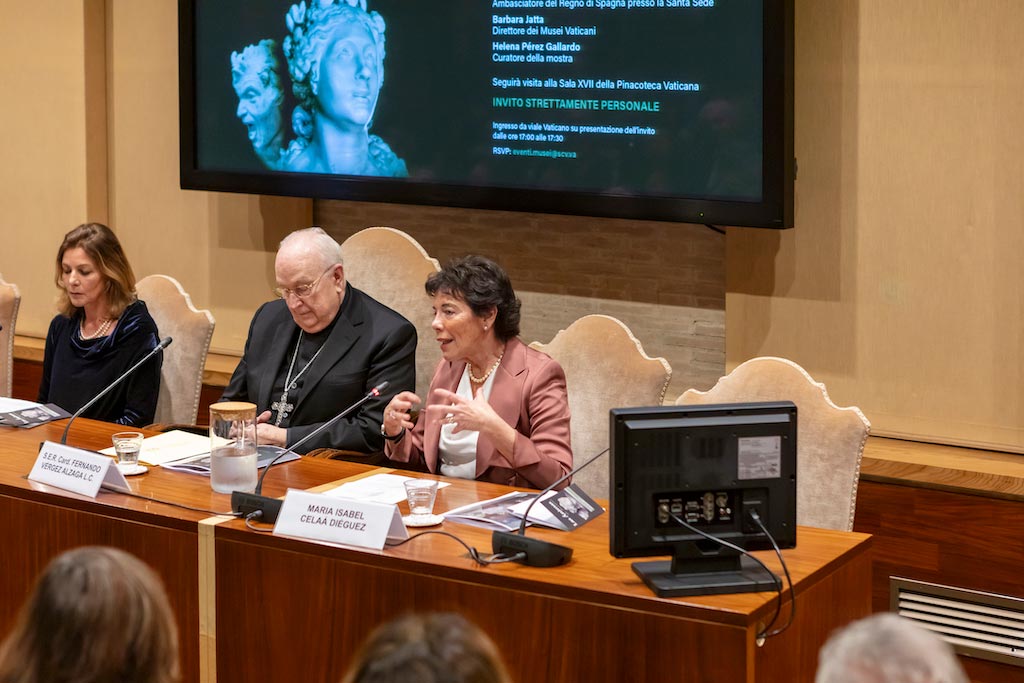 Por su parte, la Embajadora de España ante la Santa Sede, S.E. María Isabel Celaá Diéguez, destacó que con esta exposición en los Museos Vaticanos de las dos obras juveniles de Gian Lorenzo Bernini, “Alma Beata” y “Alma Condenada” – que habitualmente no son accesibles al público, ya que se conservan en el Palacio de España en Roma y son propiedad de la Opera Pia-Stabilimenti Spagnoli en Italia – “la Embajada de España desea participar en el Jubileo de 2025”. También anunció que los ingresos obtenidos de la venta del catálogo de la exposición serán destinados a la población de Valencia. La inundación, añadió la Embajadora, es “una enorme tragedia provocada por el cambio climático, que ha causado una gran pérdida de vidas humanas y bienes materiales”.