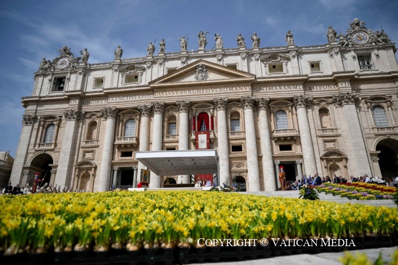 Un esfuerzo considerable requiere el embellecimiento floral y vegetal de la Plaza de San Pedro durante la Semana Santa. De ello se encarga el Servicio de Jardines y Medio Ambiente de la Gobernación del Estado de la Ciudad del Vaticano, en colaboración con maestros floristas neerlandeses.