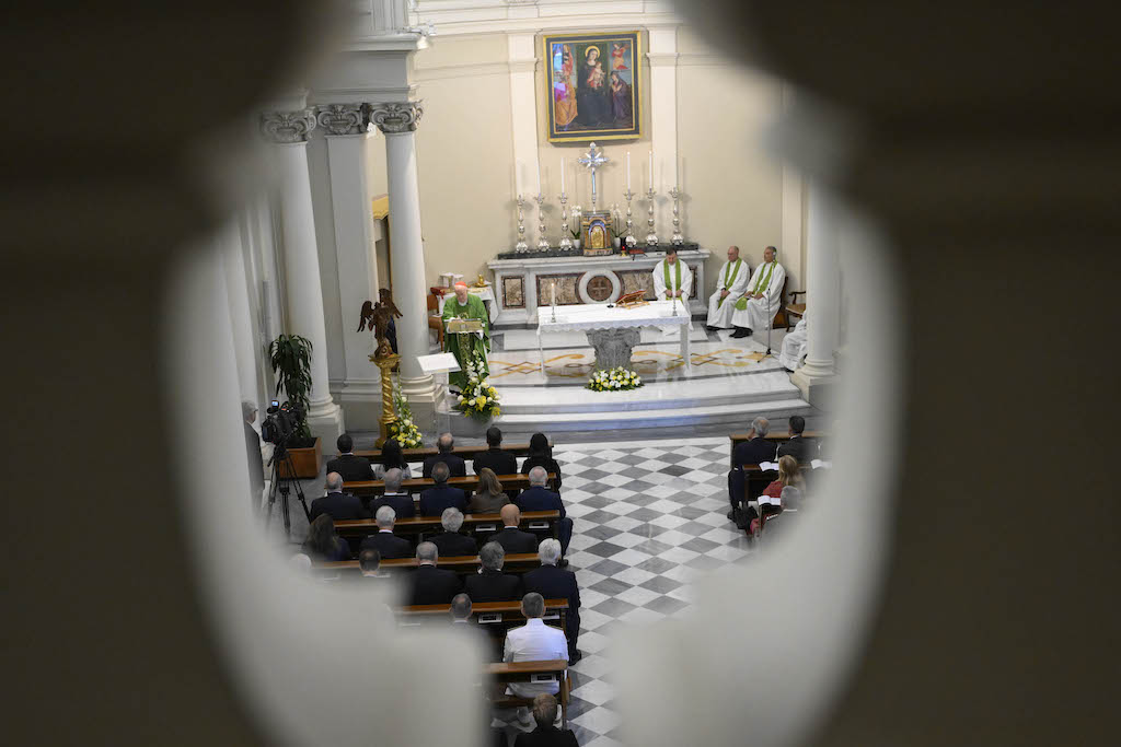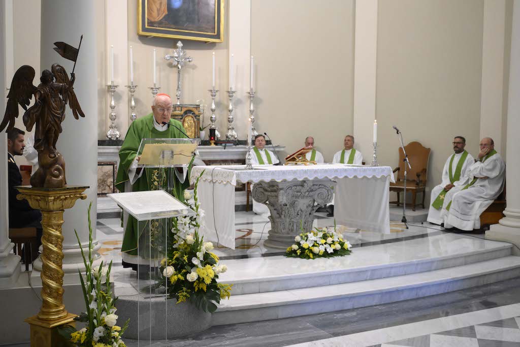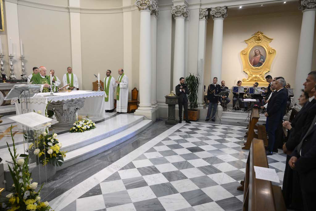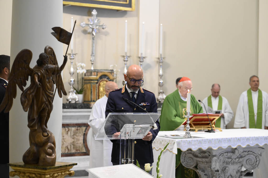 La liturgia fue animada por un grupo instrumental de la Banda Musical de la Policía del Estado y por el tenor Antonio Costa, policía en servicio en la comisaría de Catania. Para la ocasión, una imagen de San Miguel Arcángel y la Bula Pontificia de Pío XII, con la cual el Arcángel fue proclamado Patrón de la Policía, fueron colocadas en el altar. Dos policías y dos gendarmes dieron lectura a la Palabra de Dios, a las oraciones a San Miguel y a la del gendarme.