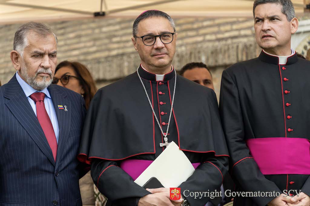 Étaient présents, entre autres, Leurs Excellences NN.SS. Emilio Nappa, Secrétaire général du Gouvernorat, et Alberto Ortega Martín, Nonce apostolique au Venezuela; S.Exc. Mgr Benito Adán Méndez Bracamonte, Aumônier aux armées ; Mgr Javier Domingo Fernández González, Chef du protocole du Saint-Siège; S.E. M. Franklin Mauricio Zeltzer Malpicam, Ambassadeur de la République bolivarienne du Venezuela près le Saint-Siège; ainsi que Gabriela Jiménez, vice-présidente du Secteur science et technologie, écosocialisme et santé du Venezuela.