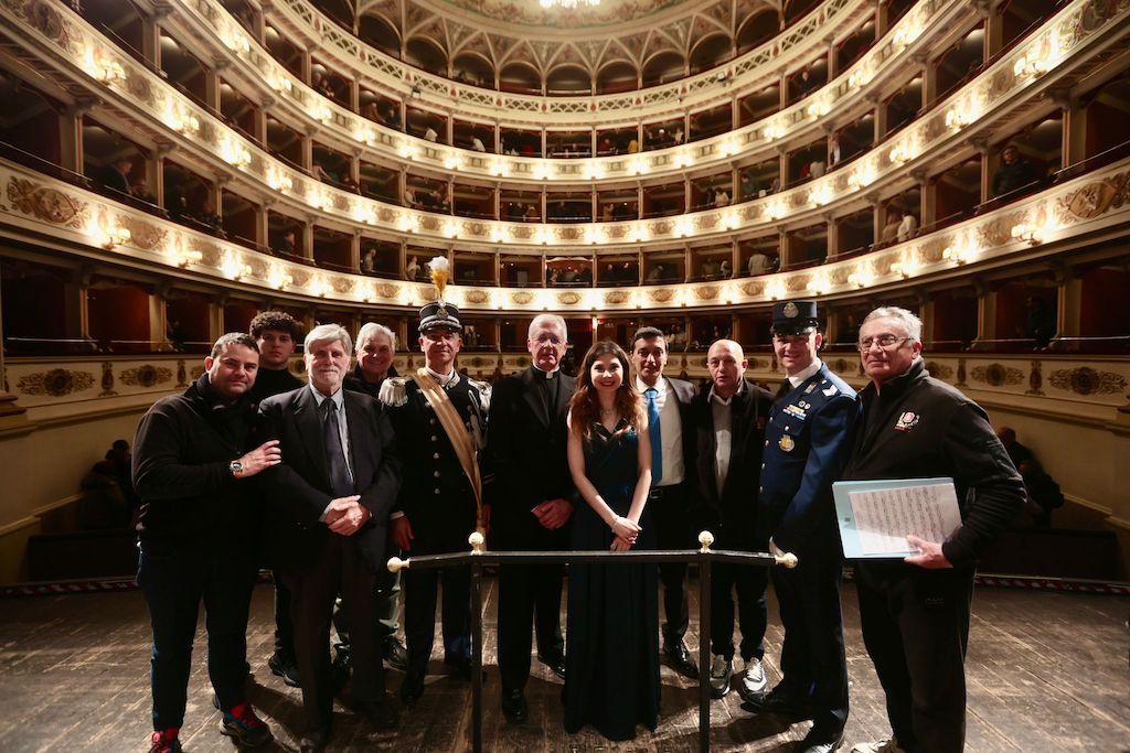 À la fin, avant l’interprétation de l’Hymne de Mameli, S.Exc. Mgr Boccardo a souligné : « Peut-être quelqu’un se sera-t-il demandé quel est le rapport entre un concert et la fête de saint Ponziano. Je voudrais donner au moins deux réponses. La première : nous avons voulu ce concert comme un hommage à la ville de Spolète, qui conserve la mémoire de saint Ponziano depuis 1 850 ans. On ne peut pas séparer Ponziano de Spolète et Spolète de Ponziano : cela fait partie de notre identité. Et je vous remercie tous d’avoir accepté notre invitation à vivre ensemble ce moment particulier. Deuxième réponse : nous avons besoin, au moins de temps en temps, de moments de beauté, qui nous rassurent et nous consolent. Dans notre monde blessé par la violence, la haine, la prévarication et la guerre, nous avons besoin de quelques gouttes de consolation pour pouvoir chérir l’espérance que cette Année Sainte nous propose. L’espérance nous permet de voir que le bien est plus fort que le mal, de vivre avec plénitude et responsabilité le temps qui nous est donné de vivre. Nous espérons que ce moment de beauté nous aidera tous à bien vivre ». La Fanfare, par l’intermédiaire du Vice Commissaire de la Gendarmerie Mauro Colaiacomo, a remis à Monseigneur Boccardo un tableau représentant leur groupe musical, qui a été défini comme « les anges chanteurs du Pape ».