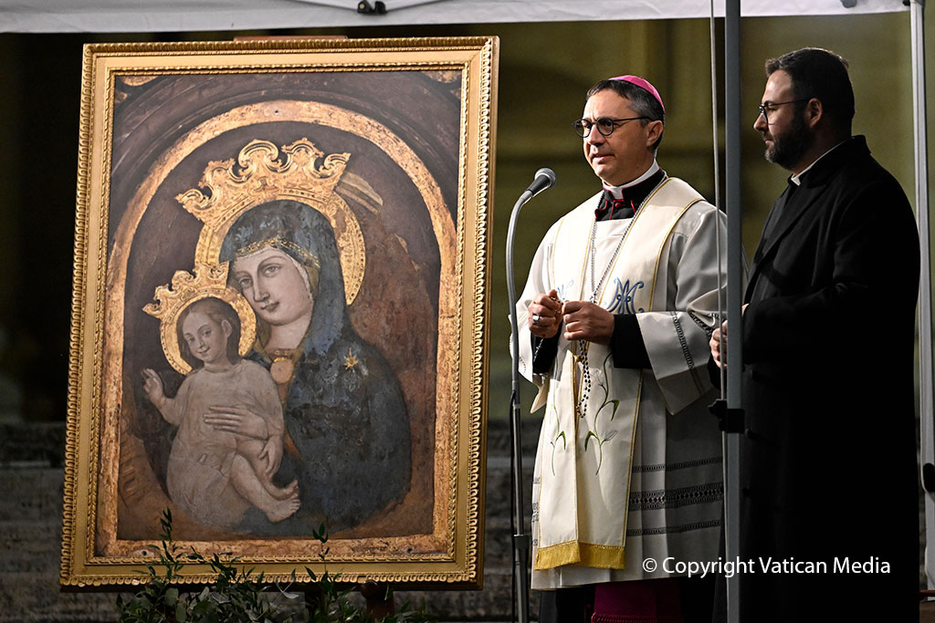 Après le chant du Salve Regina, S.Exc. Mgr Nappa a entonné les Litanie de Lorette et a dirigé la prière Oremus pro Pontifice. En conclusion, le prélat a donné la bénédiction aux personnes présentes, dont plusieurs Cardinaux, Évêques, religieuses, religieux, fidèles et employés du Gouvernorat.