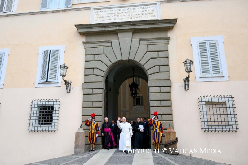 Le Pape Léon XIV était arrivé aux Villas pontificales de Castel Gandolfo dans l’après-midi du mercredi 13 août, accueilli, entre autres, par la Présidente du Gouvernorat, Sœur Raffaella Petrini, par le Directeur, Andrea Tamburelli, et par les employés de la Direction des Villas pontificales.