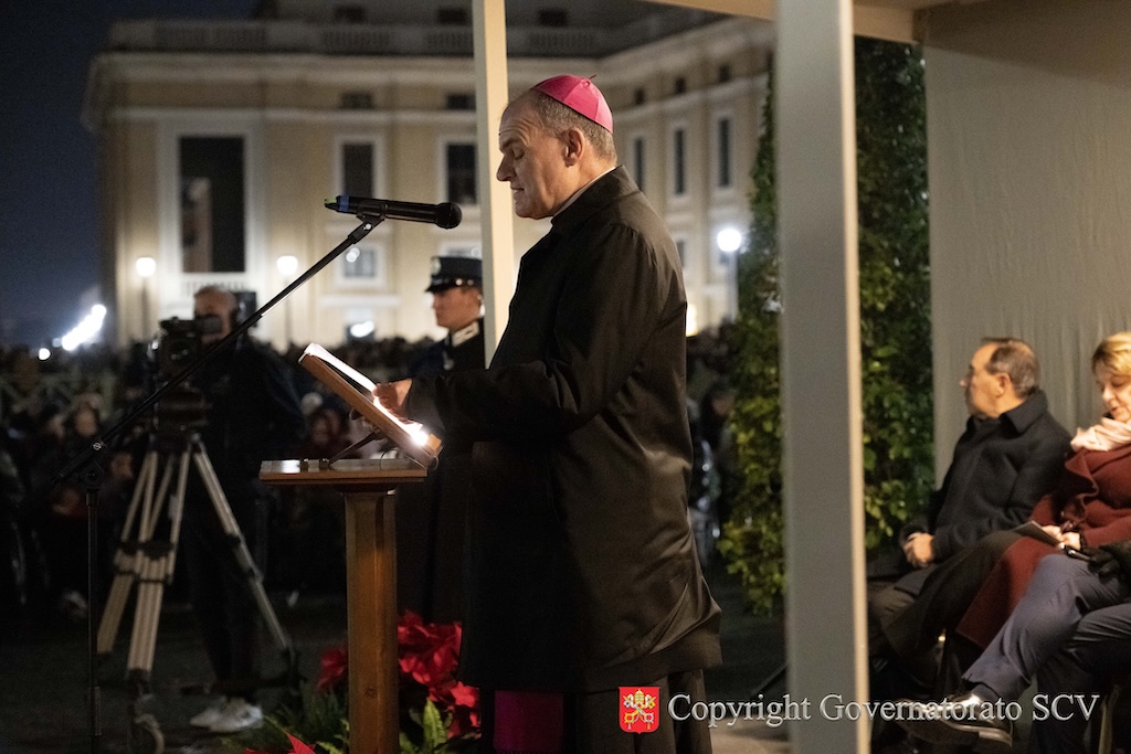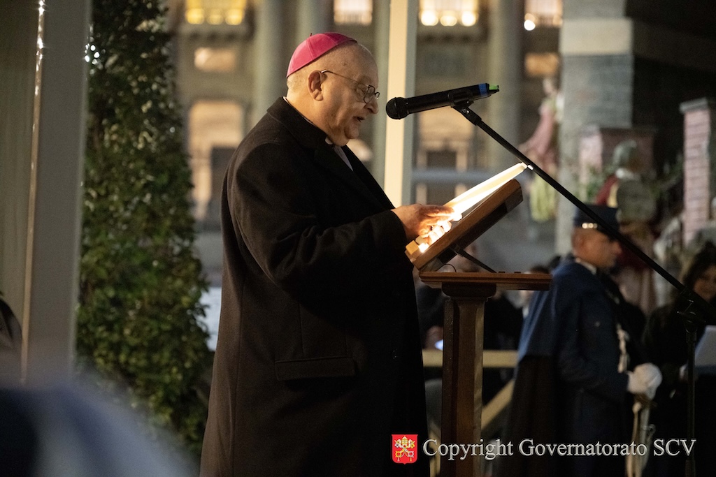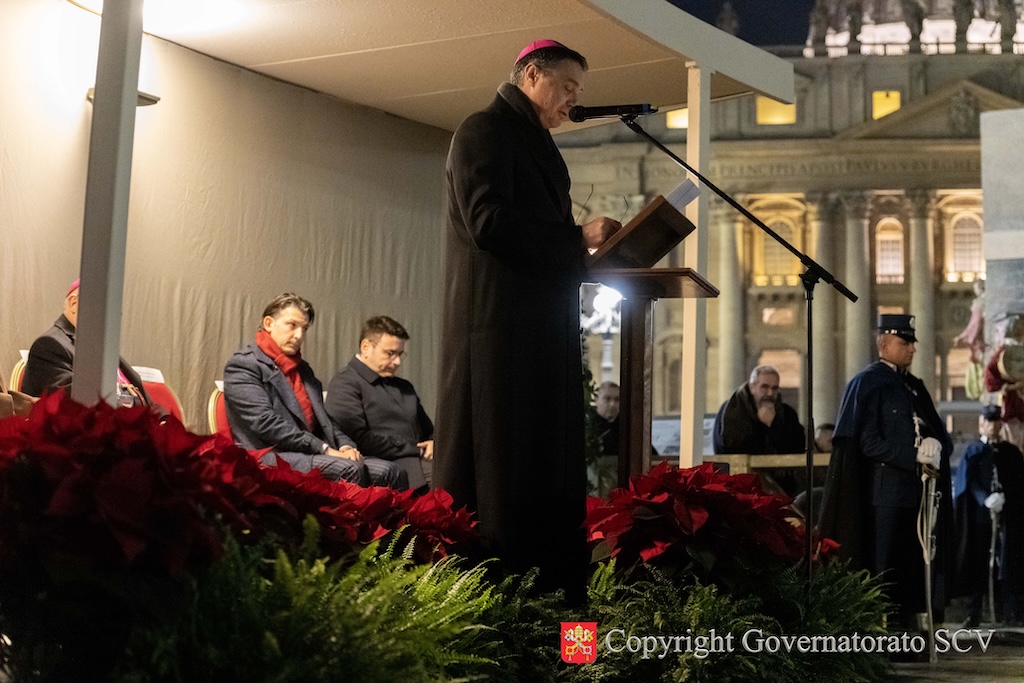 Je remercie de tout cœur les communautés qui ont offert l’Arbre et réalisé la Crèche de cette année : leur geste est un don à l’Église et un signe de cette collaboration entre peuples et cultures qui construit la véritable paix. Je remercie également tous les collaborateurs du Gouvernorat, la Fanfare de la Gendarmerie et les membres du Dicastère pour la Communication, qui ont rendu cet événement possible.