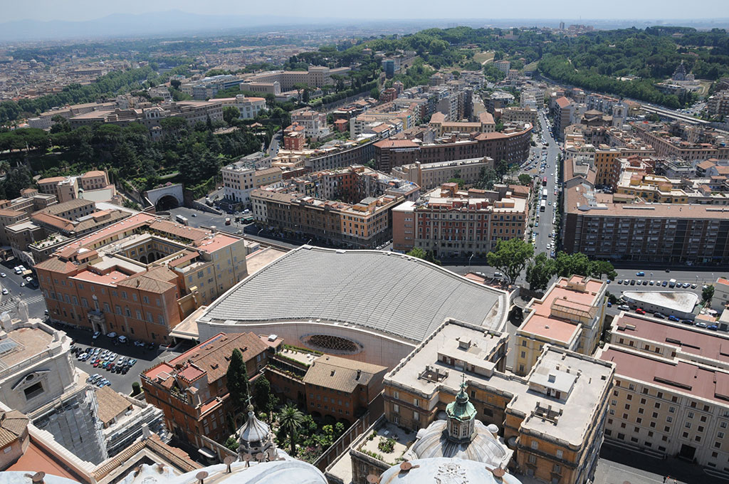 I pannelli fotovoltaici sulla copertura dell’Aula Paolo vi sono stati istallati nel 2008.  Purtroppo, in Vaticano manca lo spazio, è difficile integrare pannelli solari sopra edifici storici di pregio. L’energia prodotta nell’Aula viene interamente riversata sulla rete interna vaticana. La sala Nervi con questi pannelli si autosostiene nel corso delle manifestazioni che si tengono al suo interno. Il consumo di tutta la settimana, che è ridotto, si incrementa durante le udienze con il Papa.
