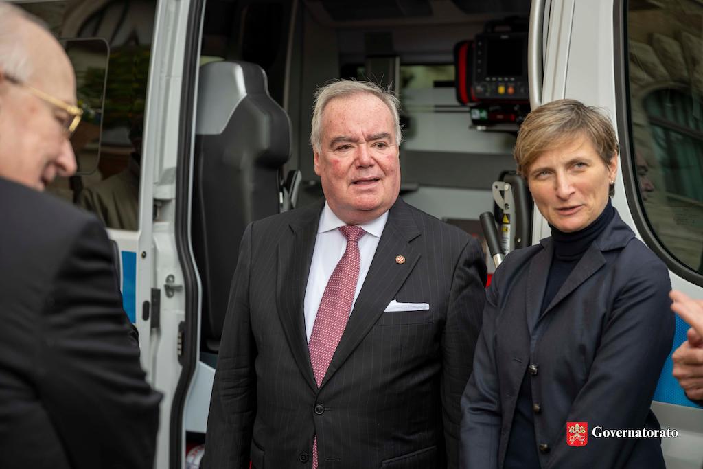 È un grande piacere per me partecipare oggi a questa cerimonia di donazione di due ambulanze, e ringrazio sinceramente l'Ordine di Malta e la Fondazione per la loro generosità.