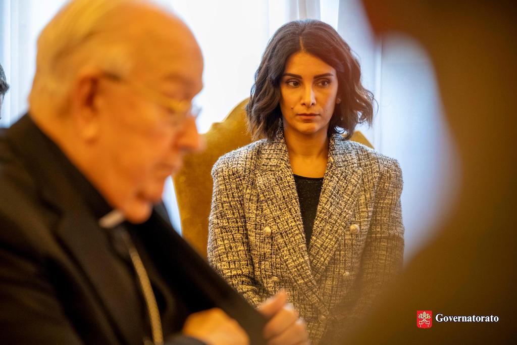 saluto anche Sr. Raffaella Petrini, e Giuseppe Puglisi-Alibrandi, rispettivamente Segretario Generale e Vice-Segretario Generale del Governatorato dello Stato della Città del Vaticano,