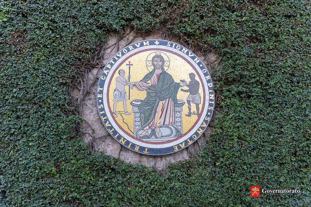 L'originale di questo mosaico, che oggi inauguriamo, si trova proprio su un'edicola sovrastante il portone dell'antico ospedale. L'iscrizione che circonda il mosaico: Signum Ordinis Sanctae Trinitatis et Captivorum (Emblema dell'Ordine della Santa Trinità e degli Schiavi) è un programma di vita per i discepoli di San Giovanni de Matha. Ancora oggi i Trinitari si occupano della liberazione dei fratelli e delle sorelle da ogni forma di schiavitù, sia corporale, sia spirituale. Tra queste coercizioni della libertà non mancano al giorno di oggi esempi, purtroppo, preoccupanti. Non solo l'uso di droghe, ma anche le dipendenze da alcool, fumo, internet e social media.