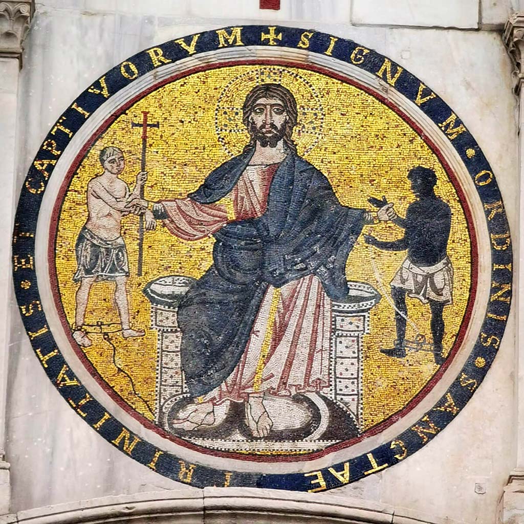 Per questo, il mosaico ricorda a chiunque passi qui davanti che l'unico Liberatore è Cristo stesso.