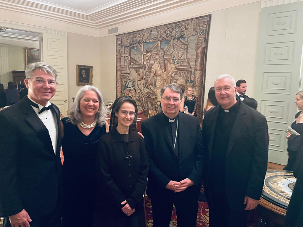 I membri dei Patrons erano guidati dai leaders Arthur e Sue Lohsen. Il momento conviviale si è svolto, sabato sera, 14 dicembre, presso la Nunziatura Apostolica negli Stati Uniti d’America, alla presenza del Nunzio, il Cardinale Christophe Pierre. Il Segretario Generale era accompagnato da Monsignor Terence Hogan, Coordinatore dell'Ufficio Rapporti con i Patrons of the Arts in the Vatican Museums.