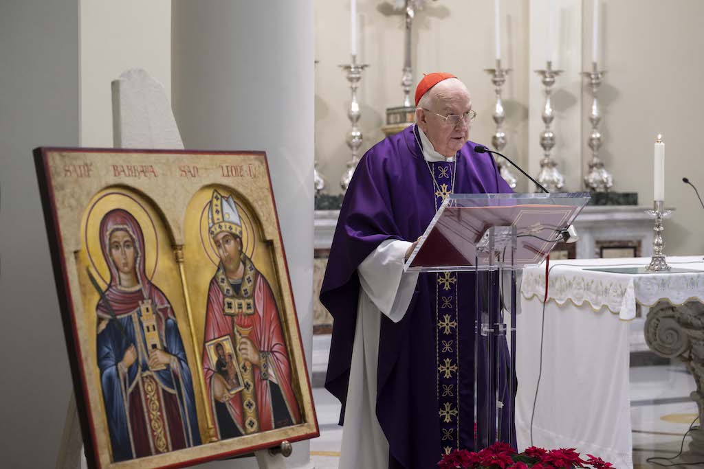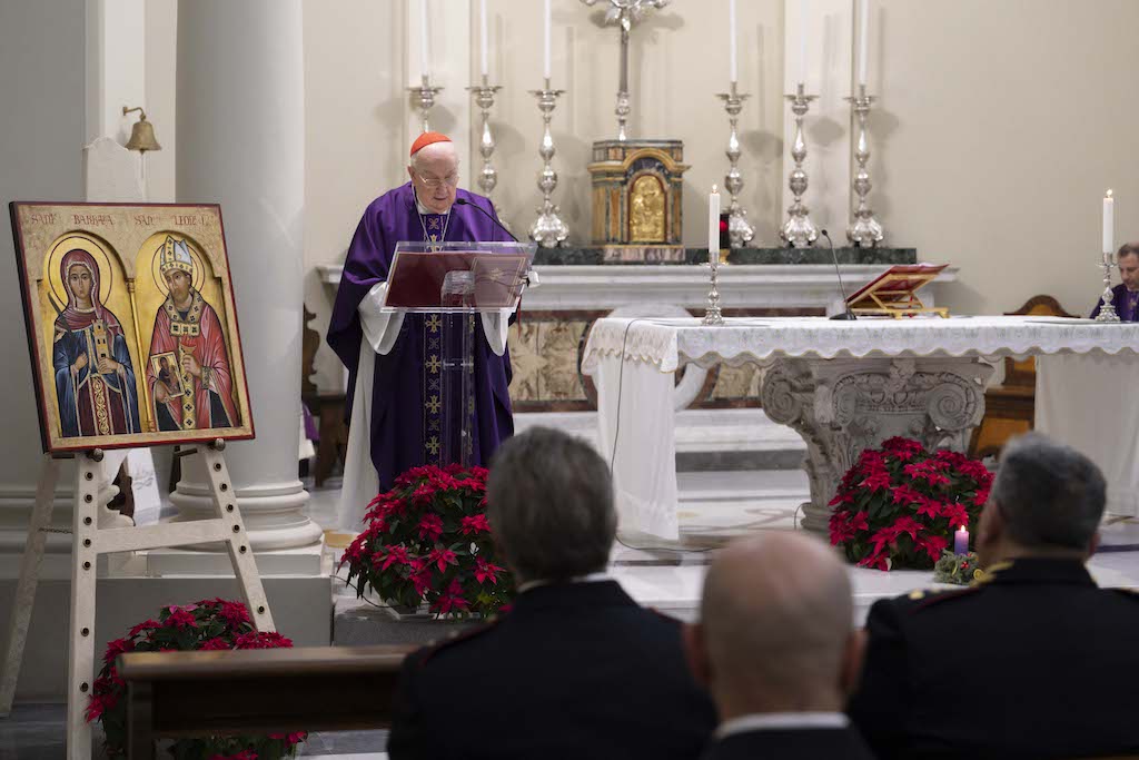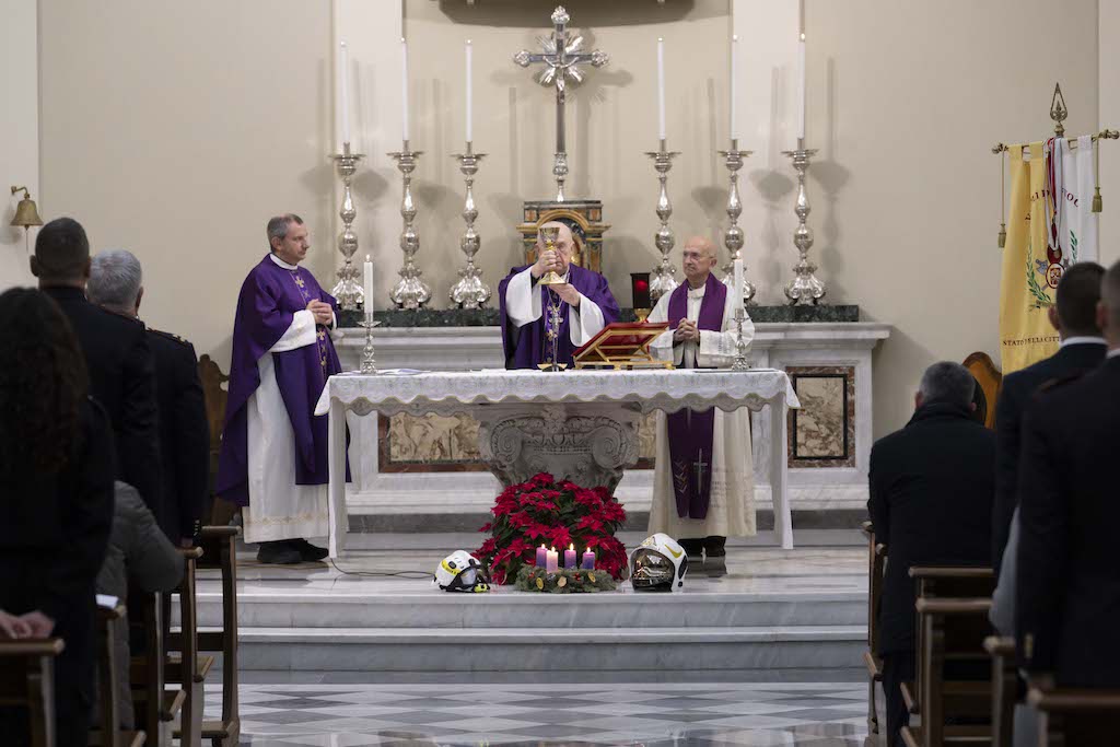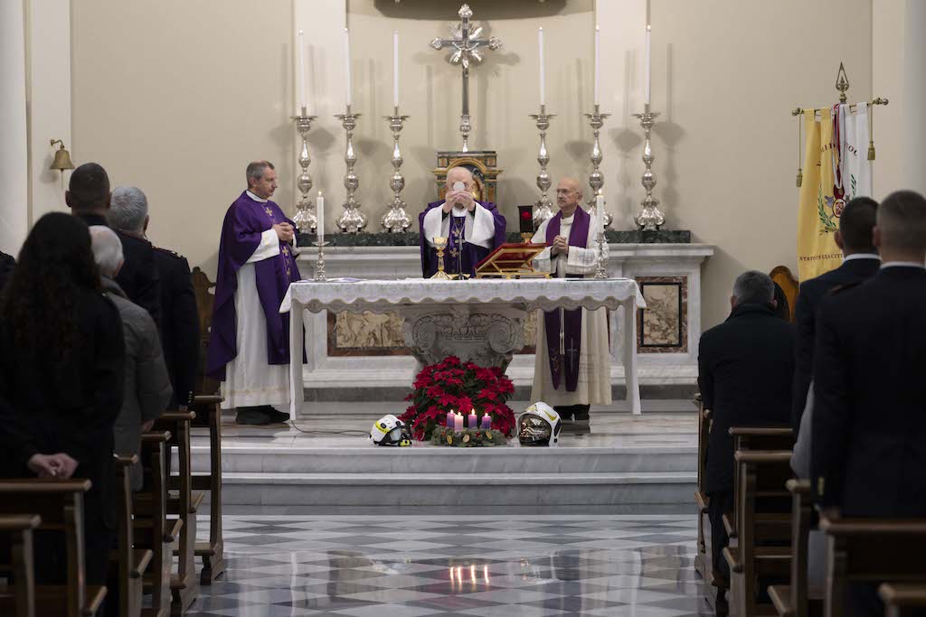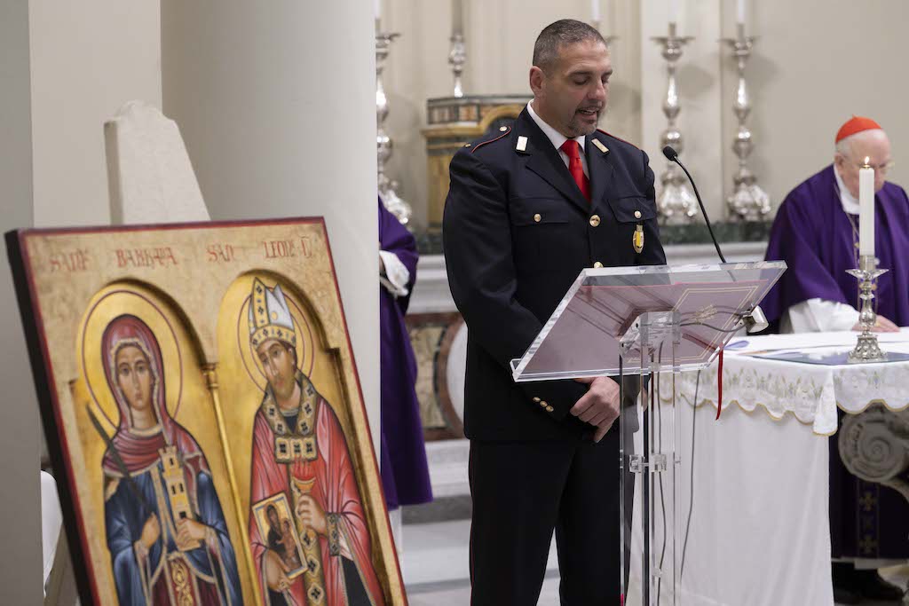 Siamo riuniti intorno alla Mensa del Signore per celebrare Santa Barbara, Patrona del Corpo dei Vigili del Fuoco insieme con Leone IV. Pochi giorni ormai ci distanziano dal Natale e dall’apertura della Porta Santa, con la quale inizia il Giubileo. Sarà un periodo di grazia e di misericordia, nel quale possiamo lucrare l’indulgenza plenaria. Oltre a un momento di benedizioni spirituali, è anche un anno in cui siamo chiamati ad affrontare l’arrivo di milioni di pellegrini. A tutti voi, così come ai Gendarmi, verrà richiesta una particolare attenzione e dedizione per essere pronti in caso di necessità ed emergenza. Le sfide non mancheranno, ma so di poter contare sulla vostra professionalità e competenza.