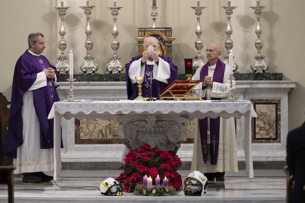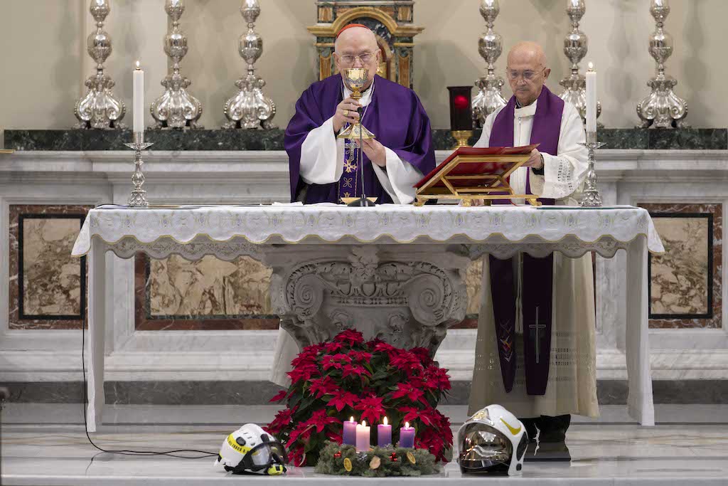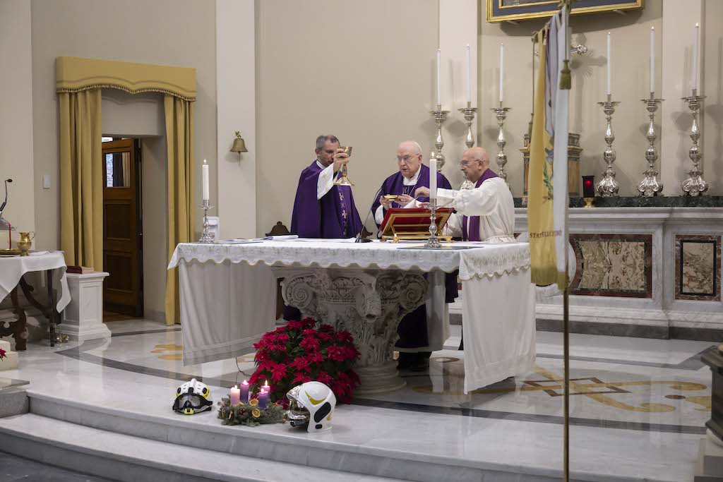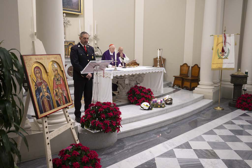 Festeggiare Santa Barbara, una martire che ha offerto la sua vita per Cristo, è occasione per ricordare quanto sacrificio occorra ai Vigili del Fuoco per svolgere la loro missione. Sotto la protezione della loro Patrona, anch’essi contribuiscono all’avvento del Regno di Dio, con la loro attività, la professionalità, la dedizione per gli altri. Lo ha sottolineato il Cardinale Fernando Vérgez Alzaga, Presidente del Governatorato dello Stato della Città del Vaticano, durante la Messa, celebrata, nella chiesa di Maria, Madre della Famiglia, domenica mattina, 22 dicembre. La festa si Santa Barbara è stata anche motivo di momento conviviale per le famiglie dei Vigili del Fuoco, a tre giorni dalla solennità del Natale. Erano presenti, tra gli altri, Sr. Raffaella Petrini, Segretario Generale del Governatorato, l’avvocato Giuseppe Puglisi-Alibrandi, Vice-Segretario Generale, l’ingegnere Gianluca Gauzzi Broccoletti, il dott. Davide Giulietti, rispettivamente Direttore e Vice-Direttore dei Servizi di Sicurezza e Protezione Civile, l’ingegner Paolo De Angelis, Coordinatore del Corpo dei Vigili del Fuoco, e don Franco Fontana, cappellano della Direzione dei Servizi di Sicurezza e Protezione Civile e dei Musei Vaticani.