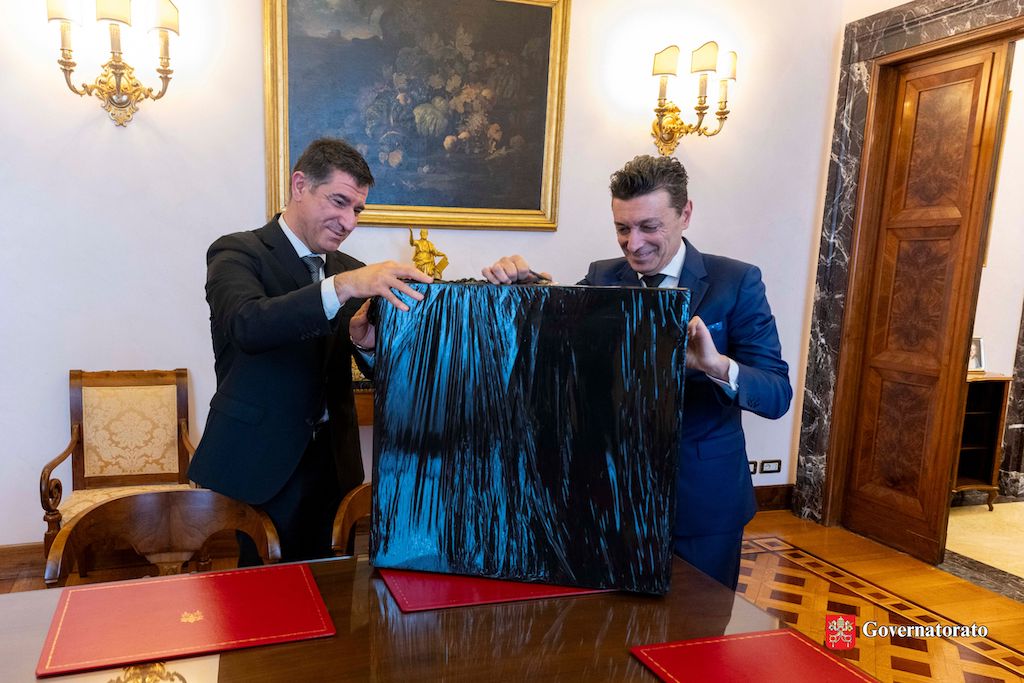 Piatti per percussione e grancassa. Sono i due doni che gli Organi di Governo hanno offerto alla Banda musicale del Corpo della Gendarmeria in segno di riconoscimento per l’impegno profuso nel diffondere la bellezza della musica nel mondo.