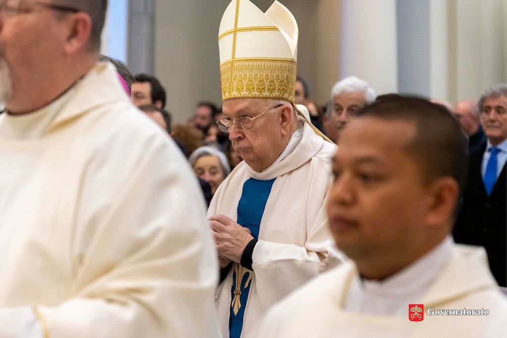 A volte le parole non bastano per esprimere ciò che si prova nell’intimo, quando si lascia dopo 53 anni di servizio al Papa, alla Santa Sede e al Governatorato. Il congedo si tinge di emozioni, ricordi, affetti. È ciò che è avvenuto anche durante la cerimonia di saluto del Cardinale Fernando Vérgez Alzaga, fino al 28 febbraio, Presidente della Pontificia Commissione per lo Stato della Città del Vaticano e Presidente del Governatorato. Giunto al compimento del suo 80° genetliaco, ha voluto congedarsi con la celebrazione della Messa, lunedì mattina, 3 marzo, nella chiesa di Maria, Madre della Famiglia. Così come non bastano le parole per felicitarsi e incoraggiare chi ha preso il suo posto, Sr. Raffaella Petrini che, dal 1° marzo, ha iniziato il suo incarico di Presidente della Pontificia Commissione per lo Stato della Città del Vaticano e Presidente del Governatorato.