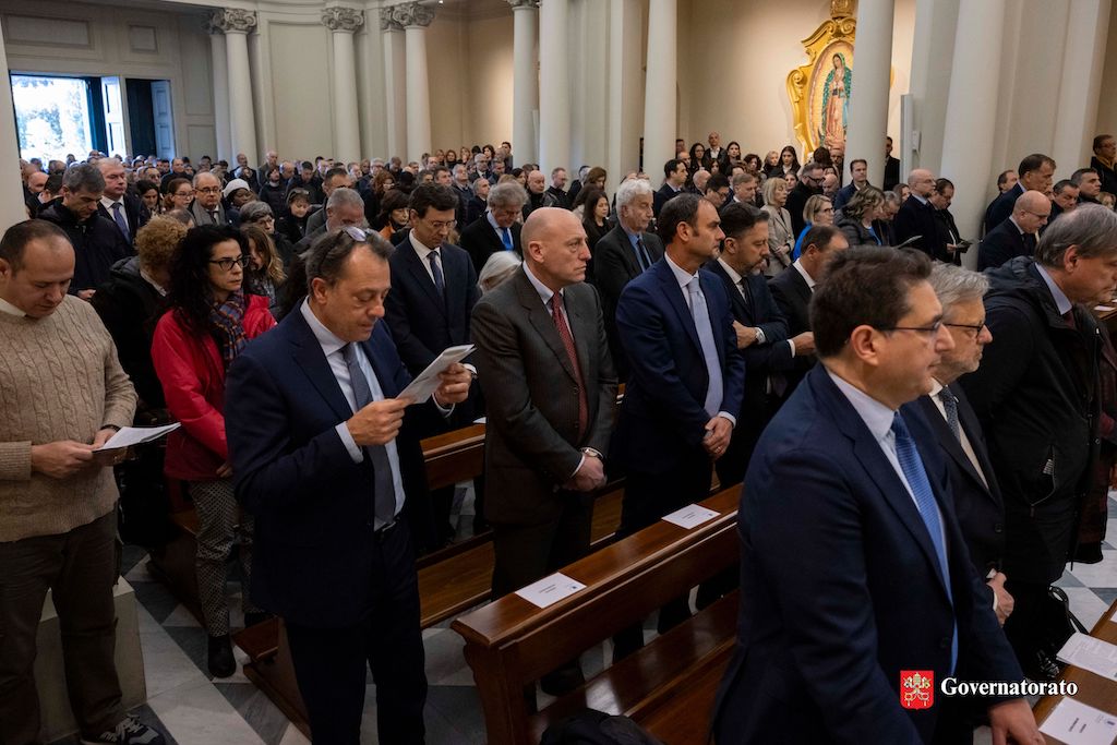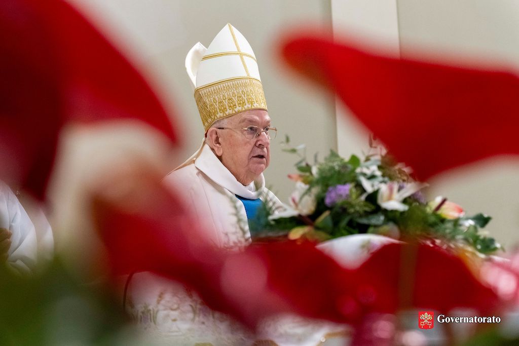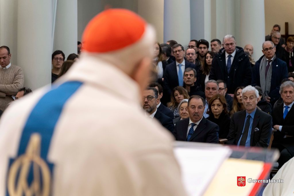 Insieme con il Cardinale hanno concelebrato il Cardinale Konrad Krajewski, Elemosiniere di Sua Santità, l’Arcivescovo Giordano Piccinotti, Presidente dell’Amministrazione del Patrimonio della Sede Apostolica, i Vescovi Marcelo Sánchez Sorondo, e Carlos Malfa, i cappellani delle varie Direzioni del Governatorato, con don Franco Fontana, Coordinatore dei cappellani delle Direzioni e degli Uffici centrali.