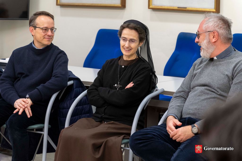 Tanti gli argomenti trattati durante la conversione - che si è svolta, martedì mattina, 4 marzo, nel Palazzo del Governatorato - a cominciare dalla struttura e dal funzionamento del Governatorato, dalle varie Direzioni e realtà istituzionali, fino al percorso accademico di Sr. Petrini e alla sua recente nomina.