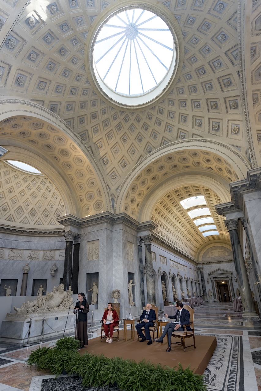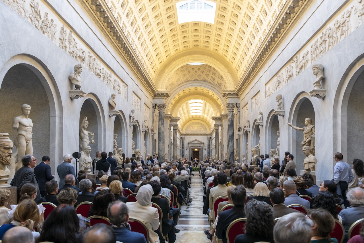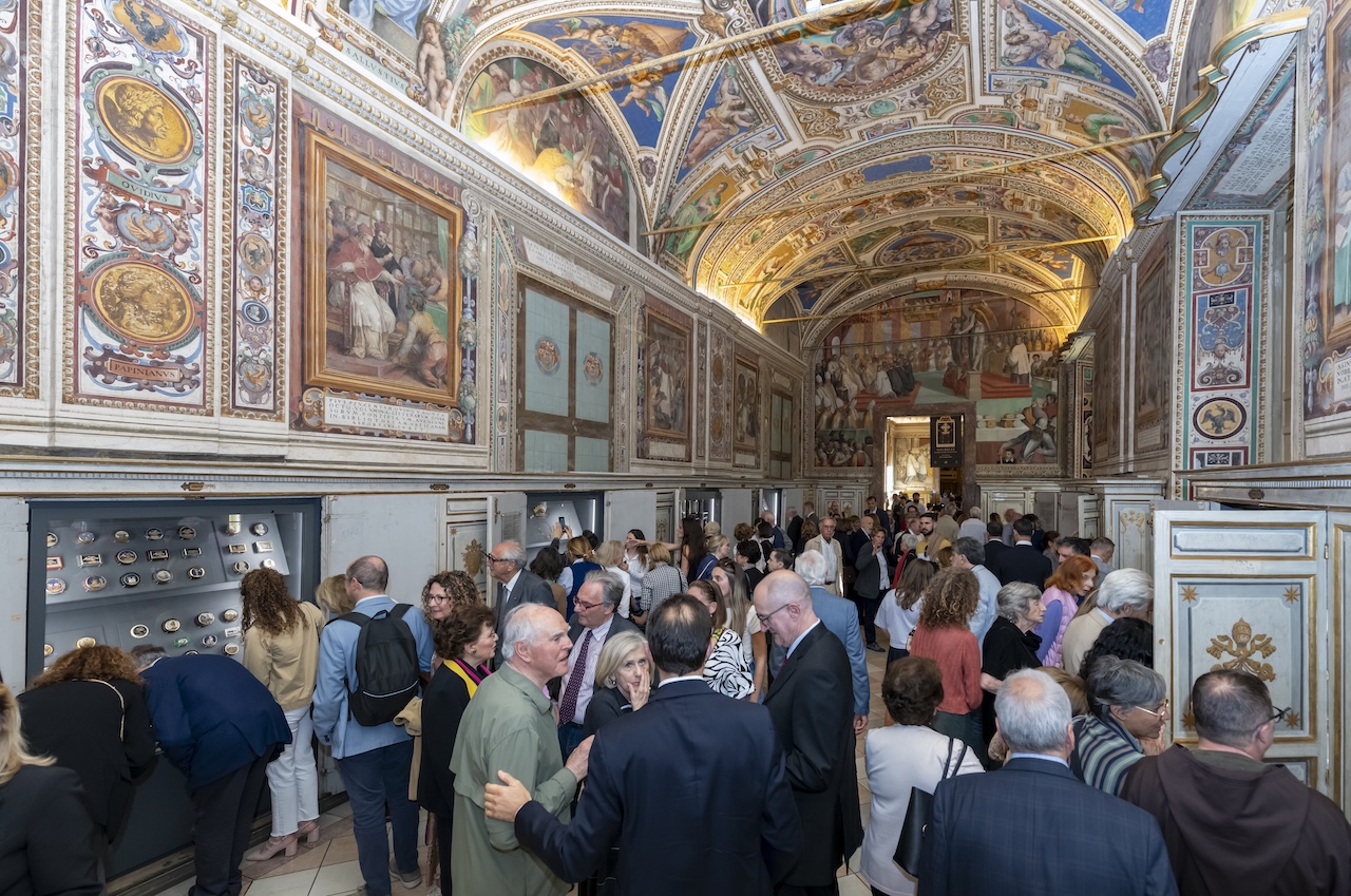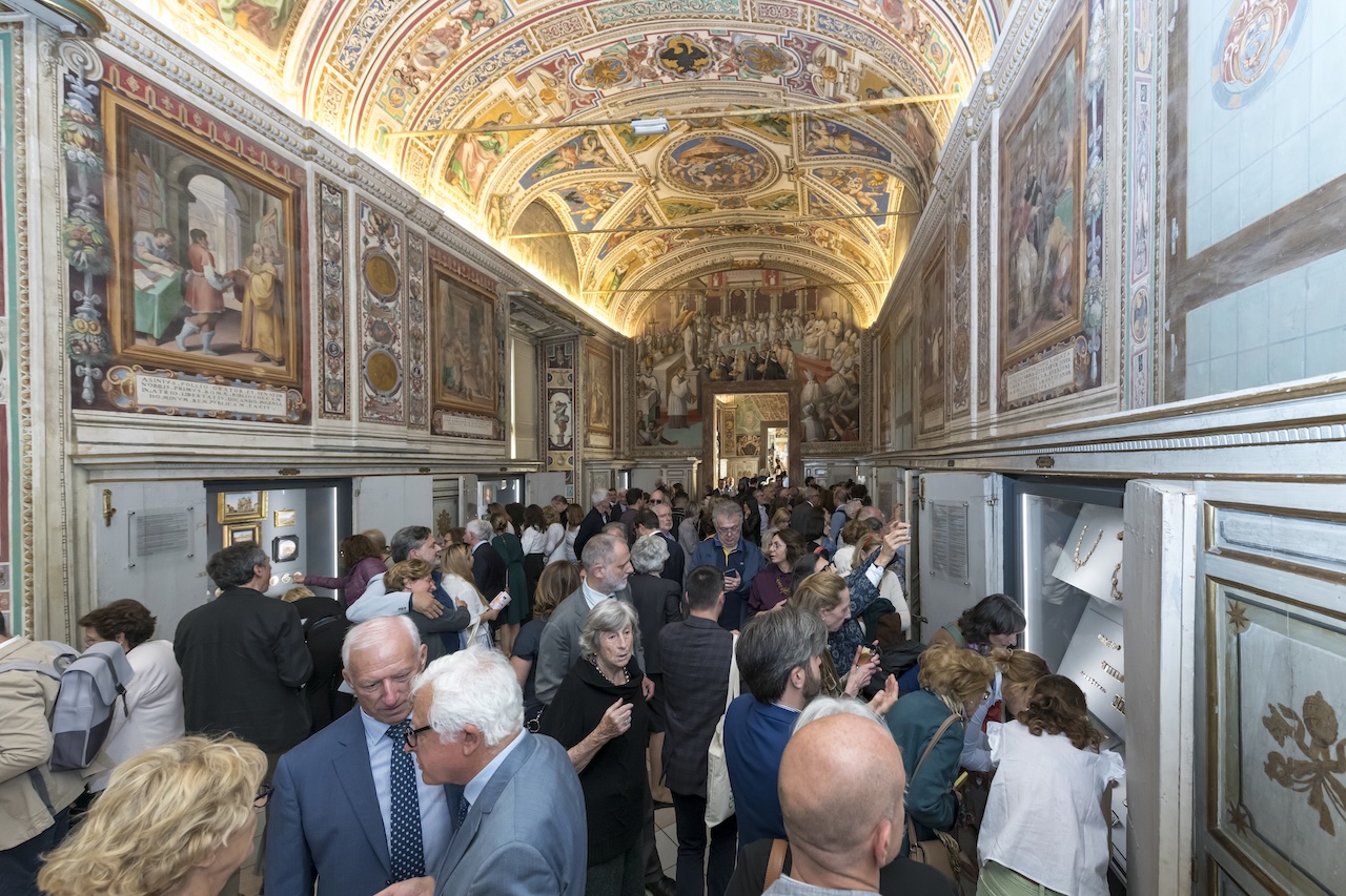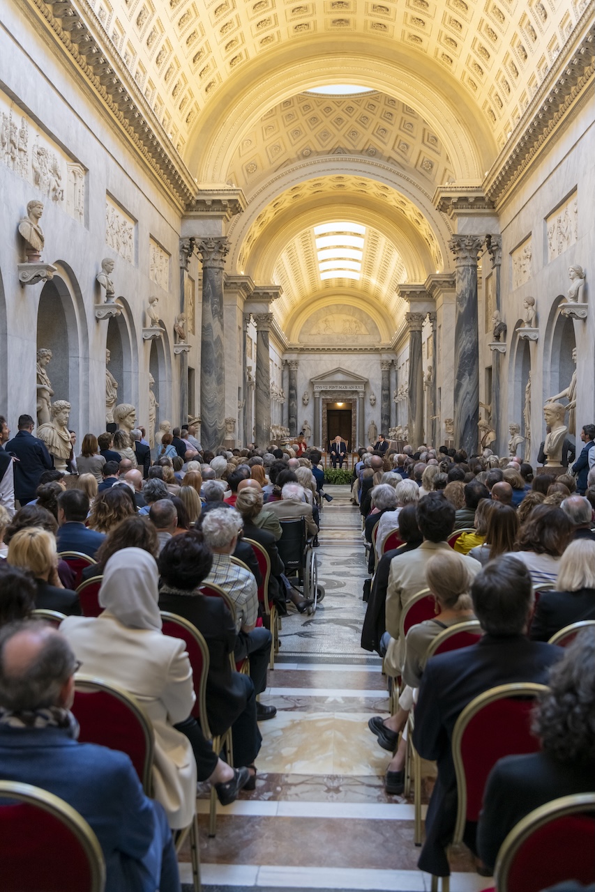 Ringrazio dunque la Direzione dei Musei, la Dott.ssa Barbara Jatta e i suoi Collaboratori, in particolare il dott. Luca Pesante, e tutti quanti hanno, a diverso titolo, contribuito alla realizzazione di questo bel progetto, testimonianza del costante impegno a valorizzare e a promuovere la conoscenza del grande e variegato patrimonio artistico che siamo tutti chiamati a tutelare, soprattutto all’interno dello Stato della Città del Vaticano.