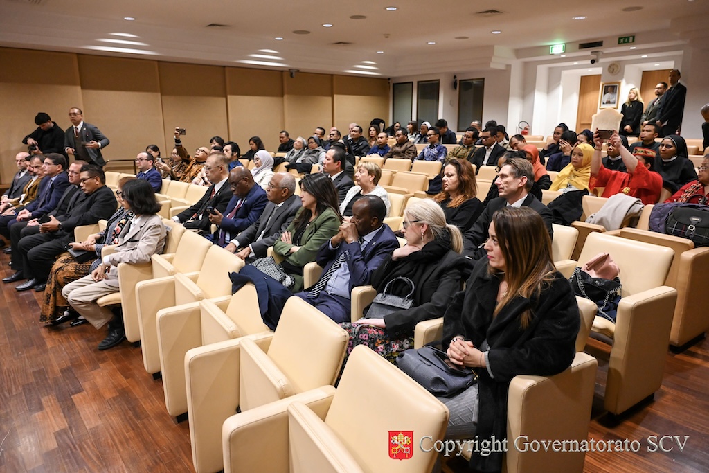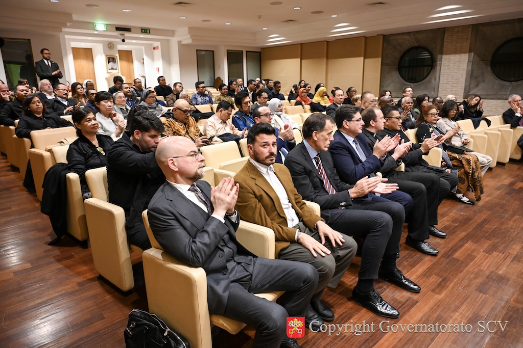 All’incontro hanno partecipato, tra gli altri, l’Arcivescovo Paul Richard Gallagher, Segretario per i Rapporti con gli Stati e le Organizzazioni Internazionali, S.E. il signor Michael Trias Kuncahyono, Ambasciatore di Indonesia presso la Santa Sede, l’ingegner Antonino Intersimone, Direttore della Direzione delle Telecomunicazioni e dei Sistemi Informatici, il dott. Alberto Albanese, Vice Direttore gestionale-amministrativo, don Felice Bruno, Capo Ufficio del Servizio Poste e Filatelia, e l’artista che ha disegnato l’immagine del francobollo, Patrizio Daniele.