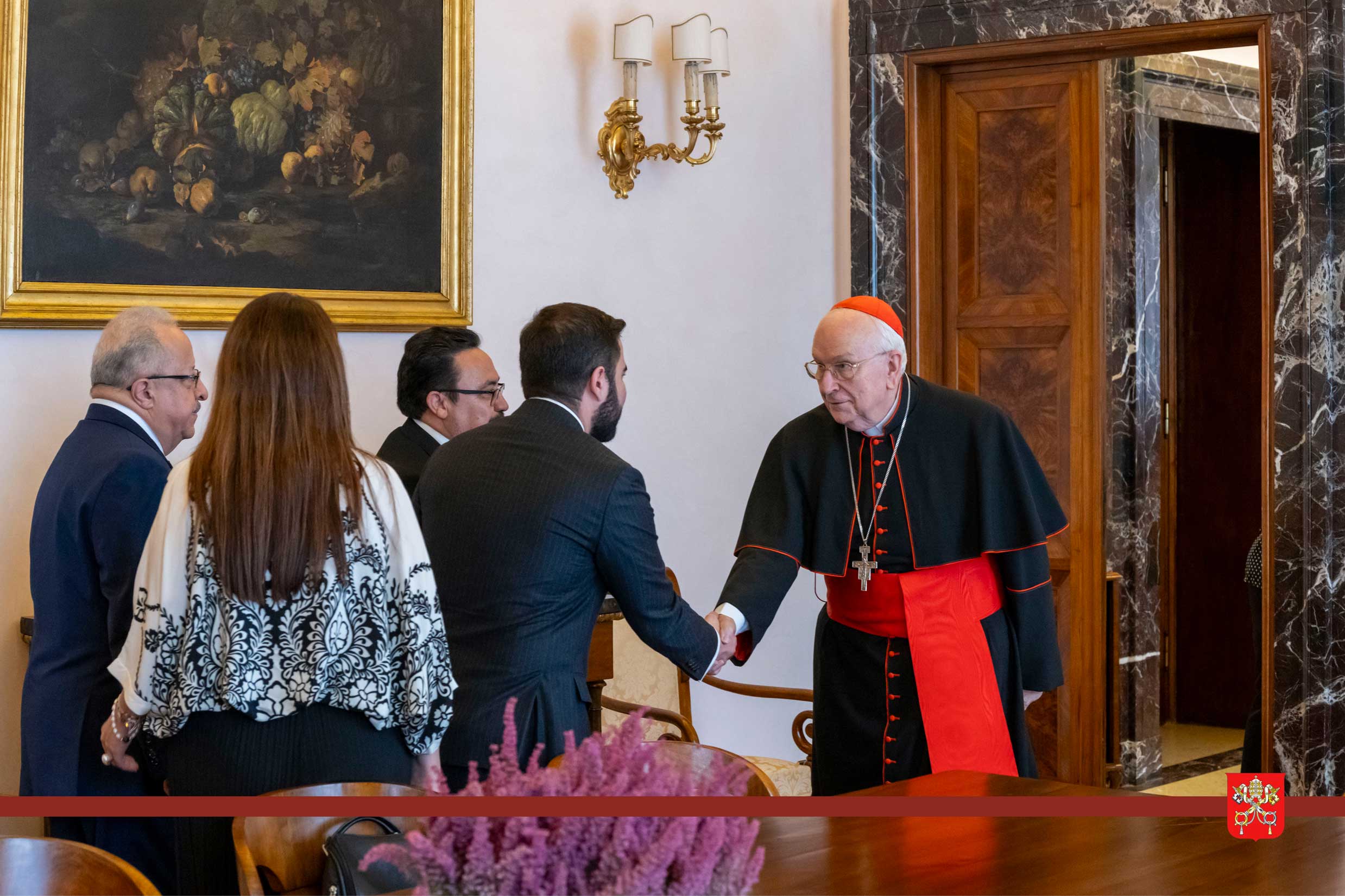 Sono profondamente lieto di darvi il benvenuto al Governatorato dello Stato della Città del Vaticano, accanto alla Basilica che ospita le spoglie dell'Apostolo Pietro e alla Sede del suo Successore, Papa Francesco.