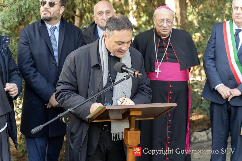 A presiedere la cerimonia, l’Arcivescovo Emilio Nappa, Segretario Generale del Governatorato dello Stato della Città del Vaticano, il quale ha sottolineato come la piantumazione di nuovi alberi per mantenere vivo il creato e rispettare l’ambiente è sicuramente in linea con i principi enunciati nell’Enciclica Laudato sì’ di Papa Francesco. “Lo è ancor di più – ha detto - quando le piante in questione hanno un chiaro riferimento biblico”.